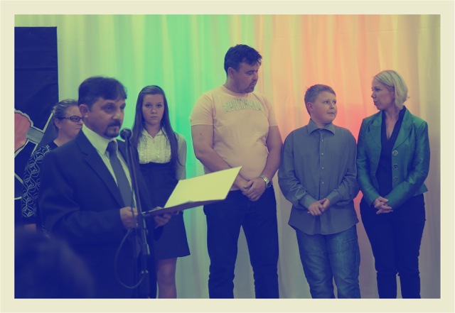 Nagrody-pamiątkowe tabliczki- wręczał wójt Gminy Oława, Jan Kownacki.