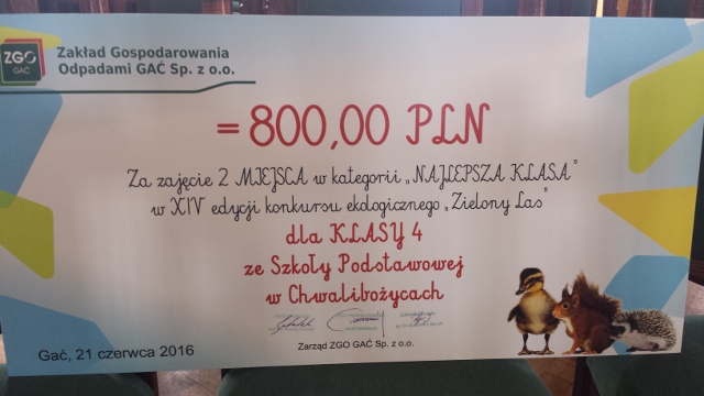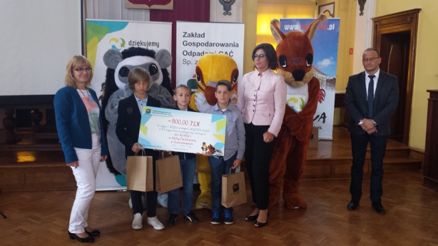 Nagrodę w postaci wielkiego czeku na 800 zł odebrała delagacja