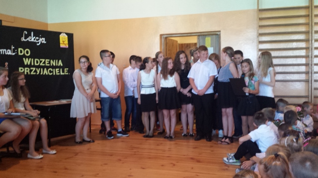 Ostatni dzwonek roku szkolnego zabrzmiał dla uczniów w dniu 24 czerwca 2016r. Na uroczystym apelu uczniowie klasy VI zaprezentowali wspaniały program artystyczny "Do widzenia, przyjaciele". Następnie otrzymali świadectwa ukończenia szkoły podstawowej oraz wyróżnienia. Licznie przybyli rodzice uronili łezke, gdy zobaczyli swoje skarby, kończące klasę VI. Wielkie podziekowania dla p.Bożeny Herby za przygotowanie uczniów i całej akademii.
