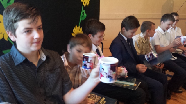 Uczniowie klasy V pożegnali swoich starszych kolegów wierszami i rymowankami oraz specjalnie przygotwanymi przez wychowawczynię niespodziankami- kubkami ze zdjęciem- to bedzie miła pamiątka.