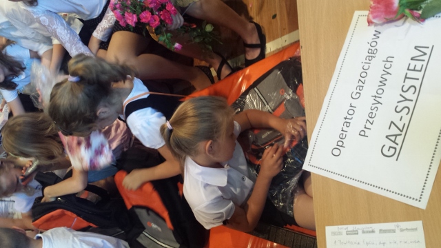 Kolejną niespodziankę otrzymali pierwszoklasiści- były to plecaki z wyposażeniem od firmy Operator Gazociągw Przesyłowych GAZ-SYSTEM- za co serdecznie dziękujemy.