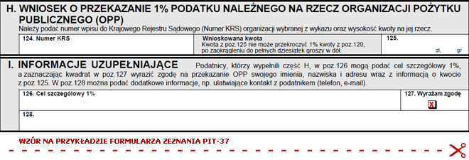 POZ. 127. X- proszę wyrazić zgodę na powiadomienie nas o przekazanej kwocie