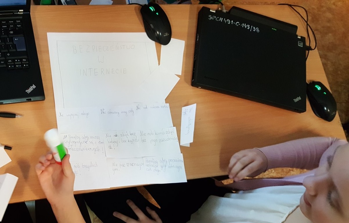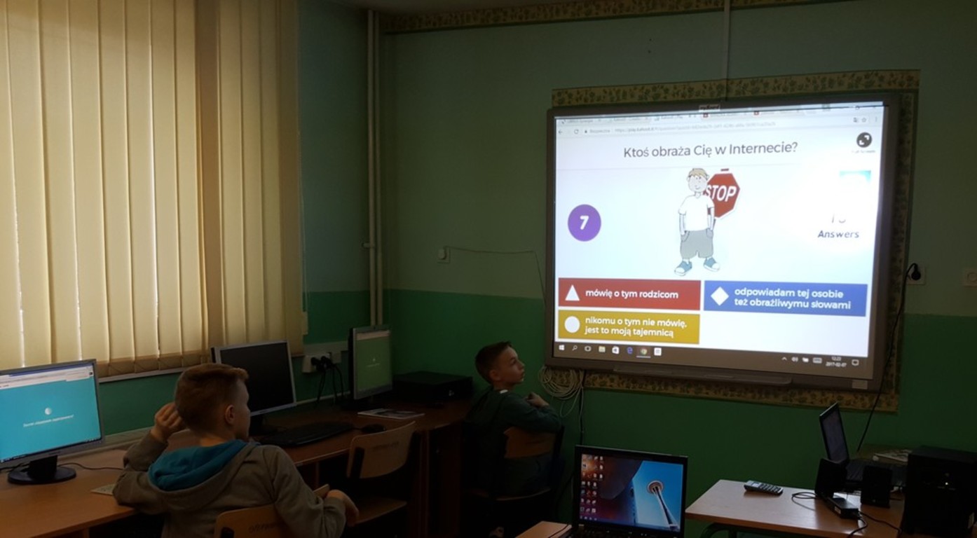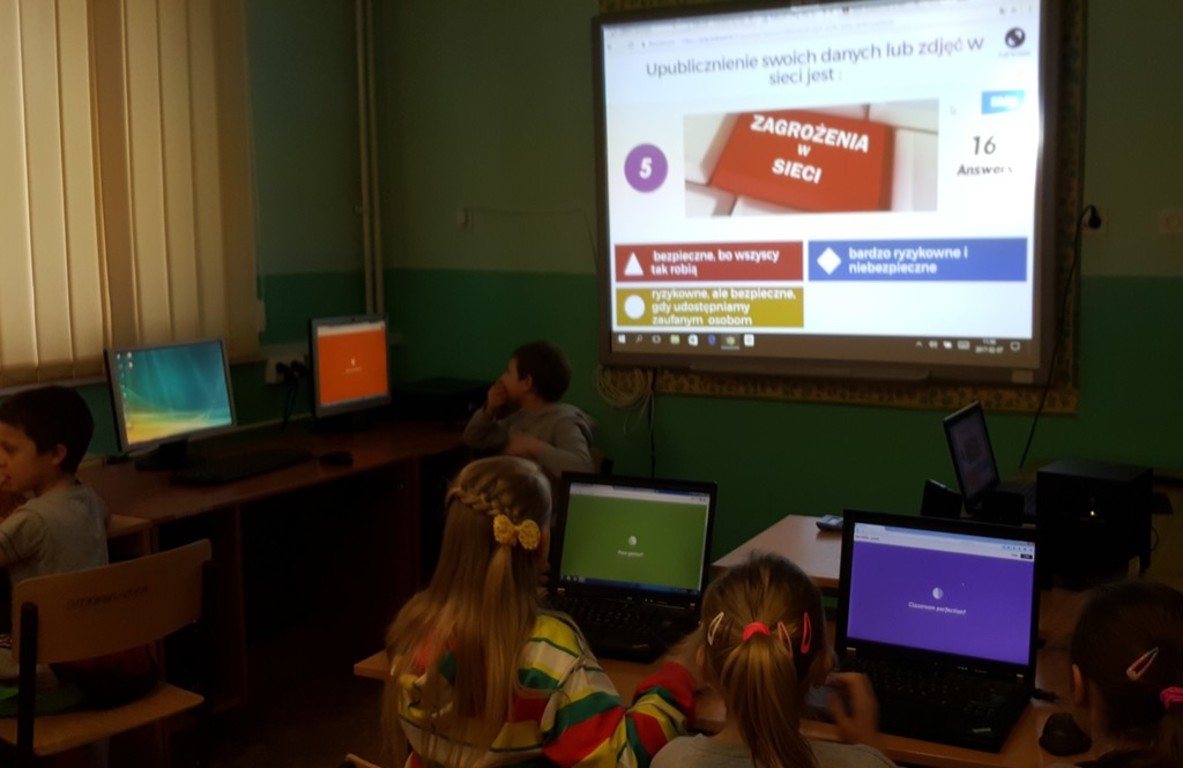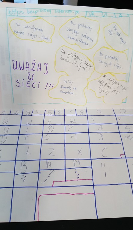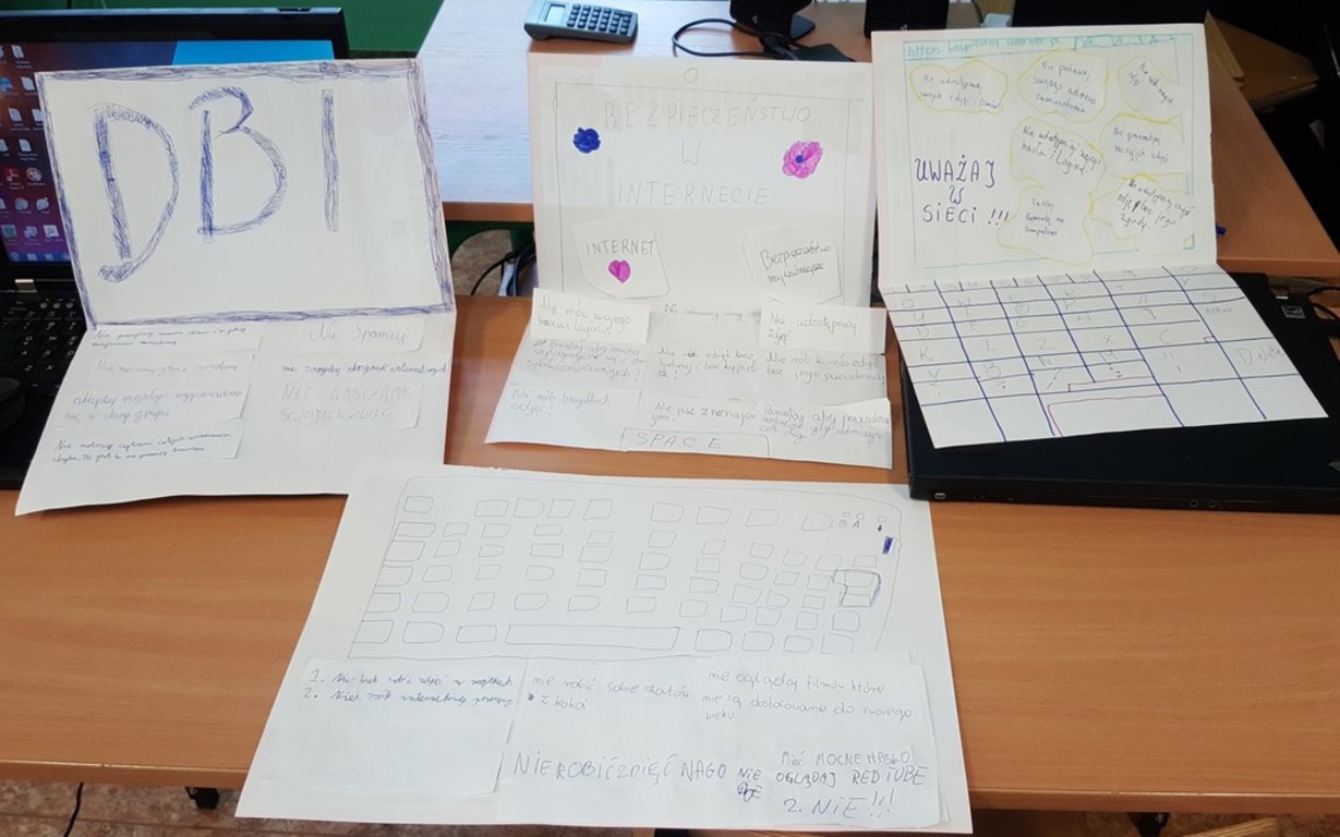 W naszej szkole odbywają sie specjalne lekcje poświęcone tym zagadnieniom, a na korytarzu powstaje gazetka. Uczniowie obejrzeli filmy edukacyjne, a potem sprawdzali swoją wiedzę w quizach Kahoot. W klasie V powstały "bezpieczne laptopy", które trafią na wystawę (po poprawieniu błędów :) )