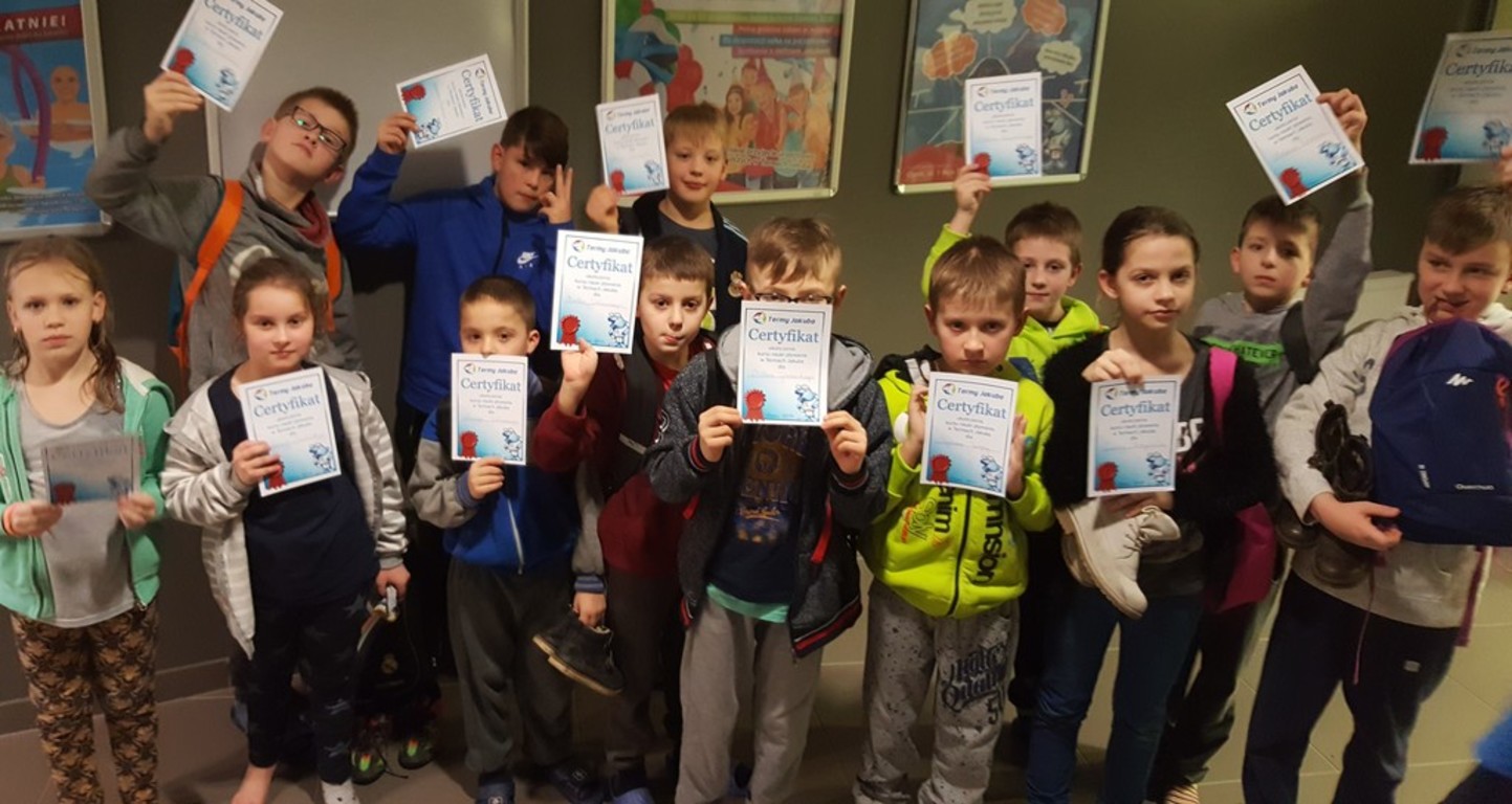 Dobiegły już końca zajęcia na basenie Termy Jakuba w Oławie. Uczniowie wzięli udział w nauce pływania, a część z nich doskonaliła swoje umiejętności. Od grudnia przez 10 tygodni trwały lekcje z instruktorami pływania. Dowóz i opiekę zorganizowała Gmina Oława. Zajęcia były prowadzone w sposób bezpieczny i atrakcyjny, po lekcji zawsze było trochą czasu na zabawy w wodzie i zjeżdżalni. Z naszej szkoły udział wzięło 16 uczestników, w całej gminie 131 ucz z gminnych szkół.