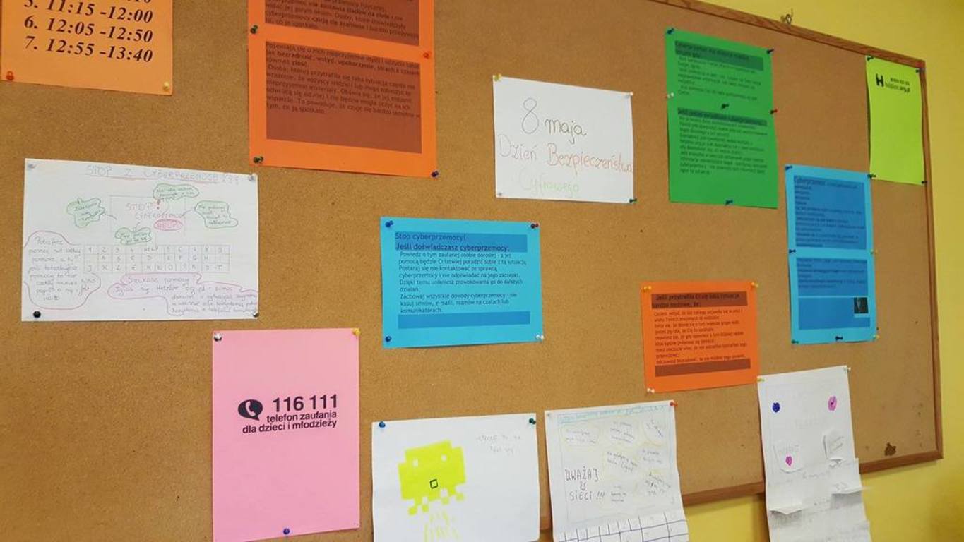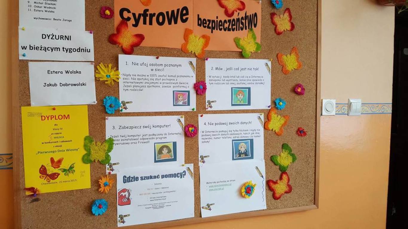 W klasie V obok interesujących informacji na temat bezpieczeństwa w Intenecie, ważnych numerów telefonów pomocy, pojawiły się papierowe laptopy, które swoimi hasłami ostrzegały przed niebezpieczeństwami. Powstały zainspirowane filmami ze strony Cyfrowobezpieczni.pl. III m. Extra!