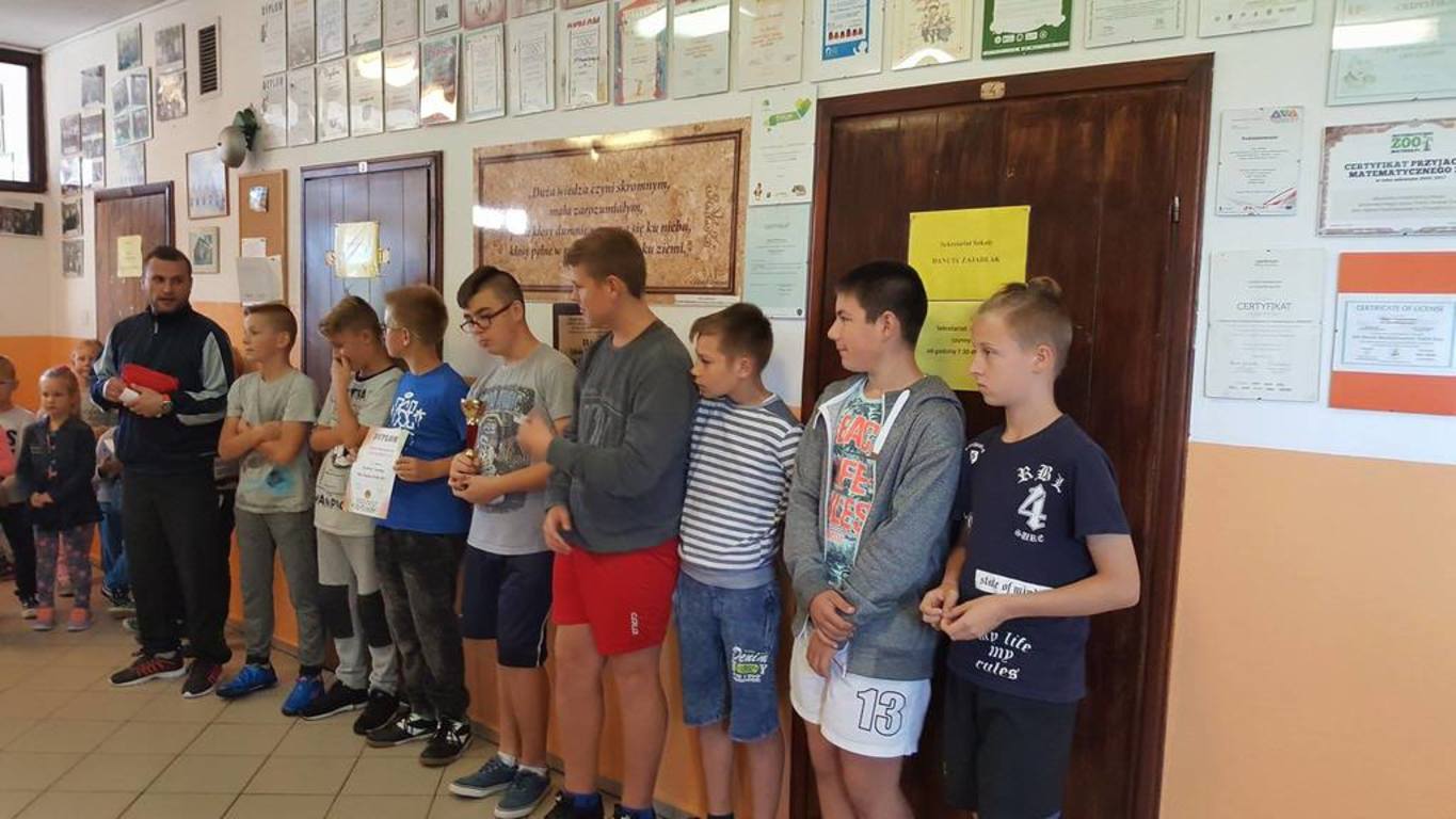 Na pierwszym apelu szkolnym, p.Miłosz Gołębiowski przedstawił laureatów letnich rozgrywek w piłkę nożną. Piłkarze pochwalili się dyplomem oraz okazałą statuetką., za co otrzymali gromkie brawa. Gratulacje!