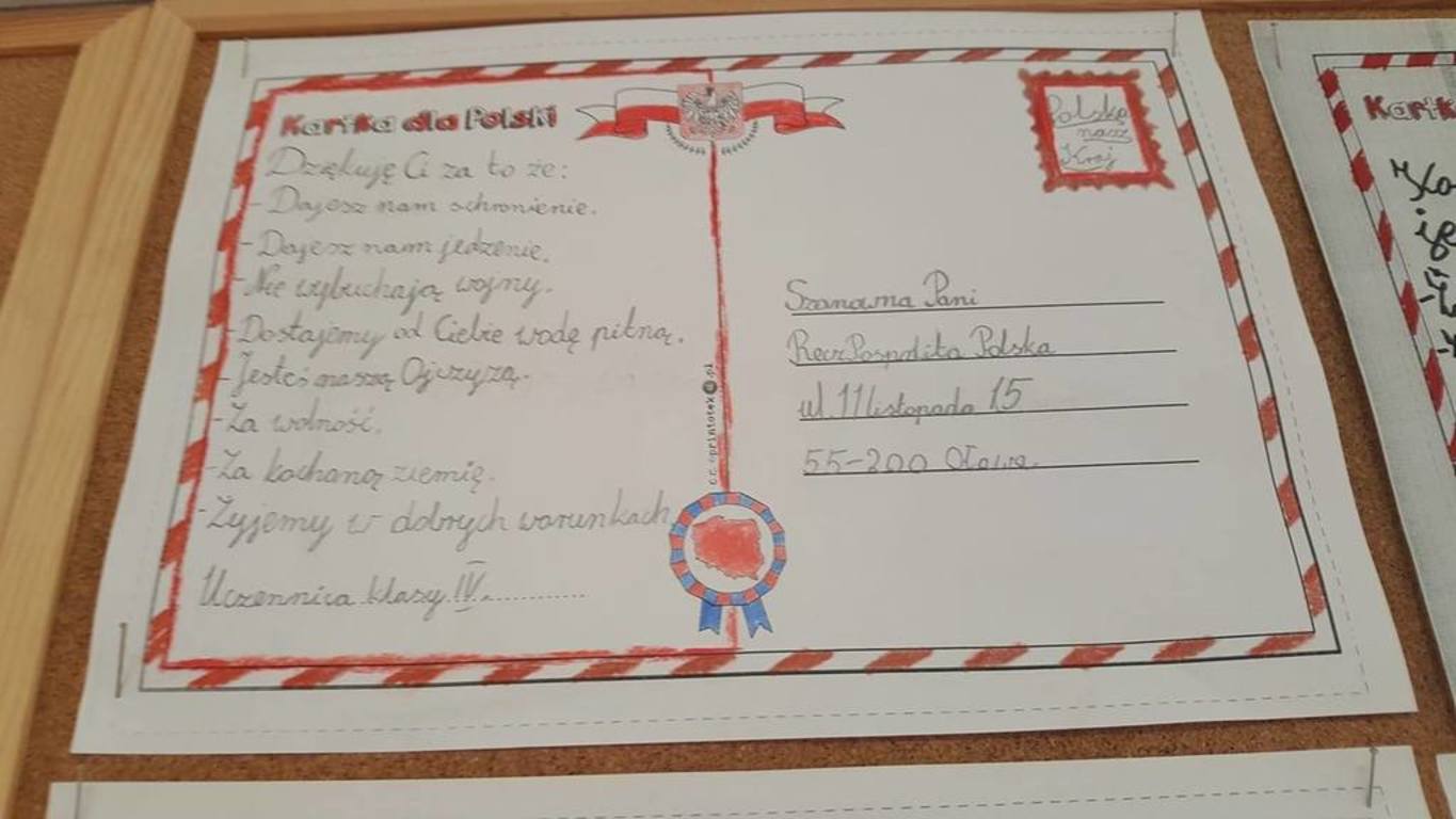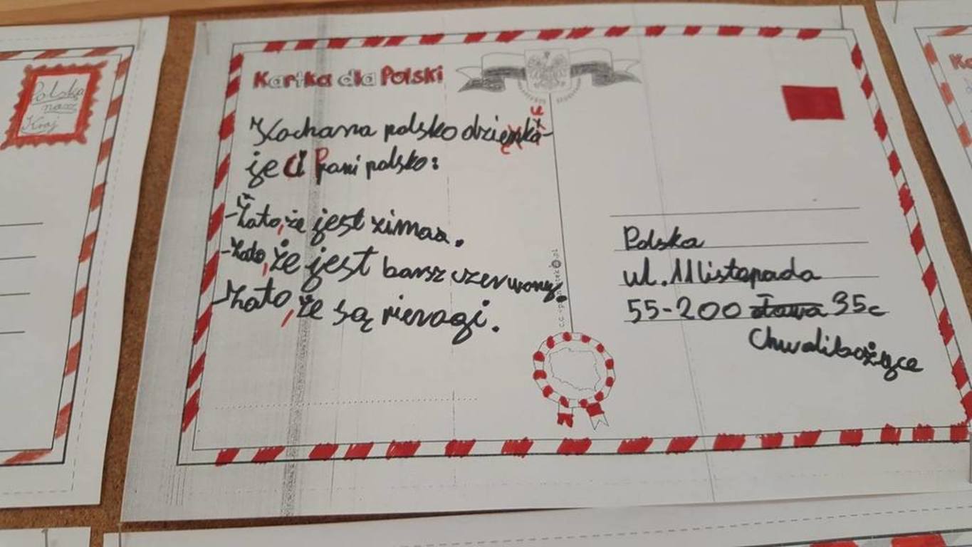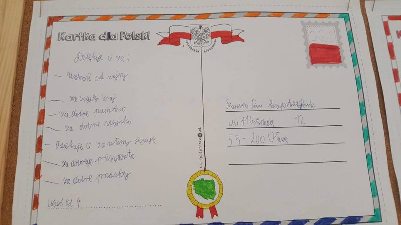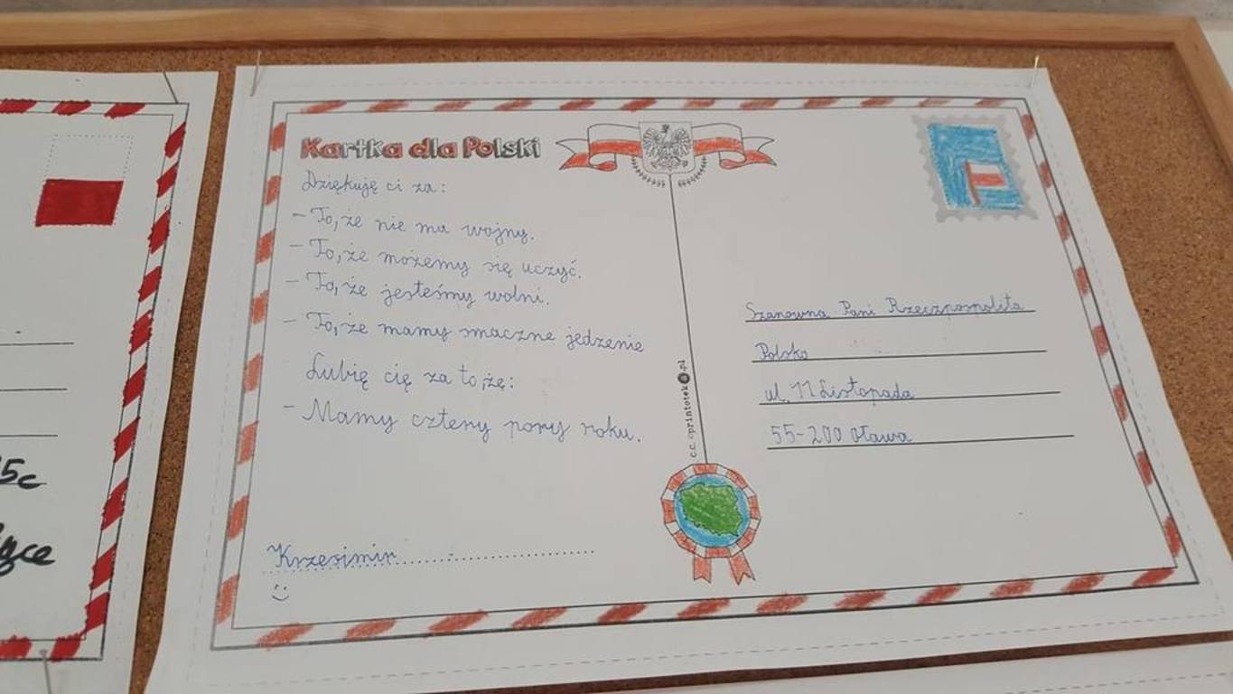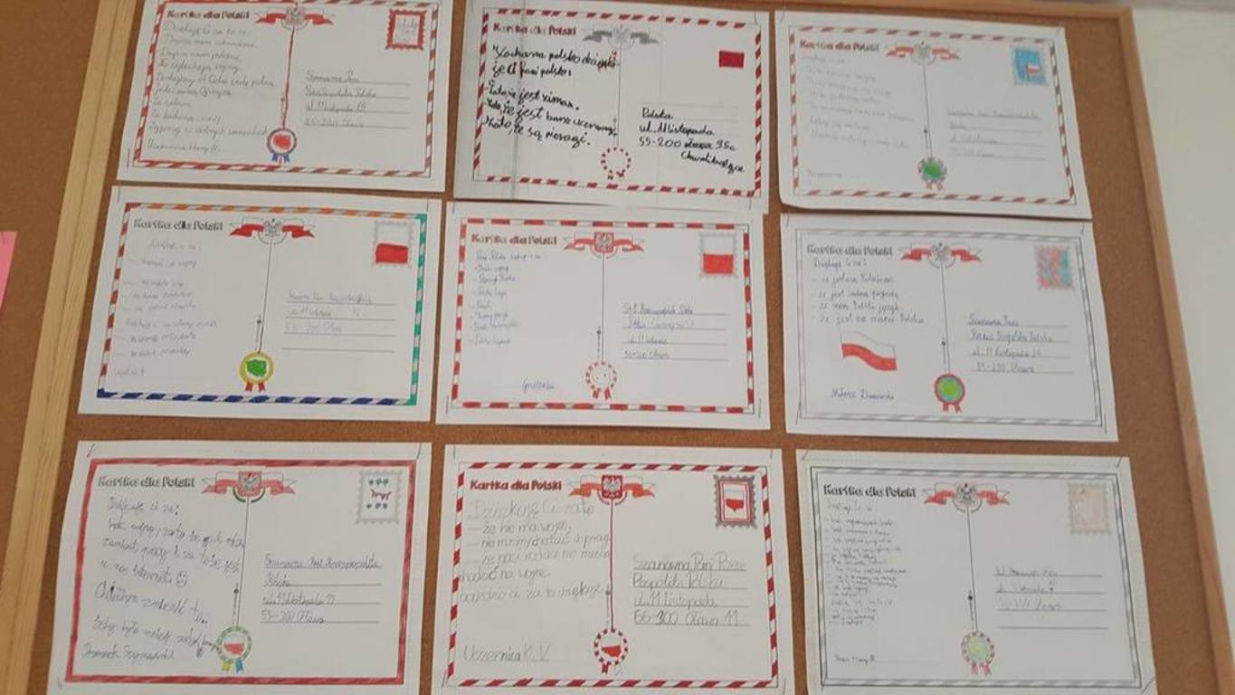 Już jutro, tj 11 listopada, obchodzimy Narodowe Świeto Niepodległości. Zaczynamy odliczanie do 100 rocznicy tego wydarzenia. Apel z tej okazji odbędzie się w poniedziałek, tj 13 listopada. Prosimy o przygotowanie strojów galowych oraz kotylionów w barwach ojczystych. Uczniowie klasy 4 na zajęciach dodatkowych pisali kartki dla Polski.