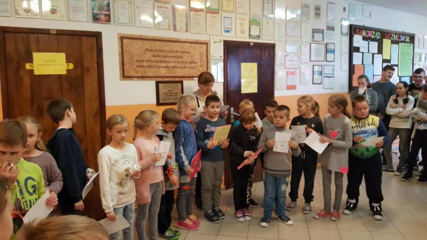 I miejsce Michał Nowacki z kl.III-Brawo. Wszyscy uczestnicy wykazali sie pomysłowścią i otrzymali dyplomy oraz nagrody pocieszenia. Brawo!