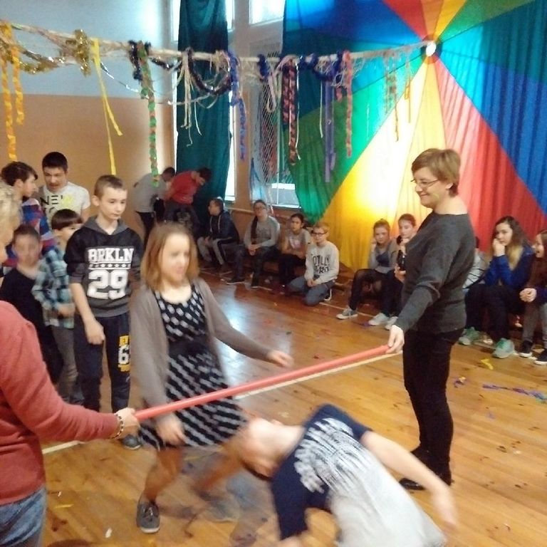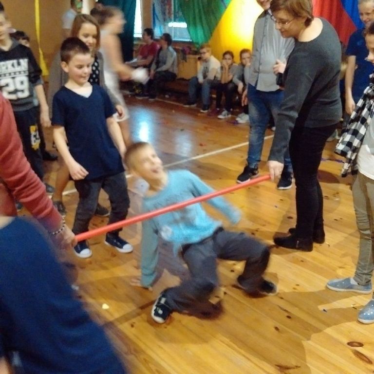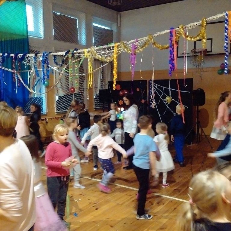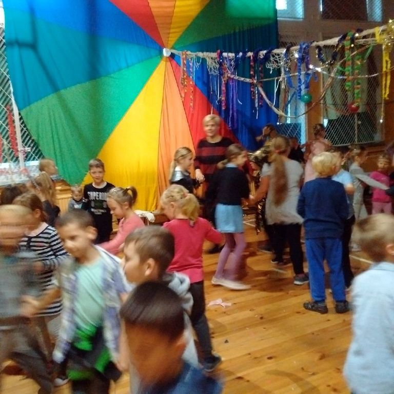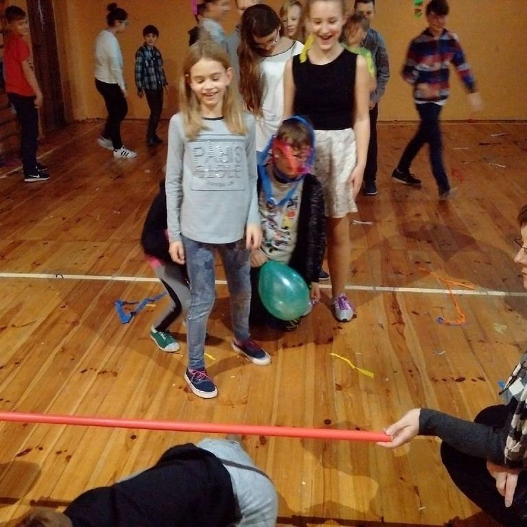 Uczniowie bawią się na przygotowanej przez Samorząd Uczniowski zabawie. Są wróżby, słodki poczęstunek w klasach i tańce na parkiecie do znanych przebojów.