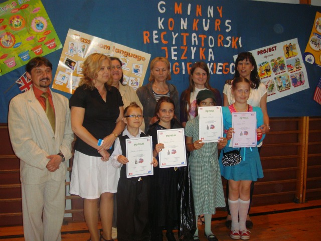 Po raz pierwszy zorganizowaliśmy Gminny Konkurs Recytatorski Języka Angielskiego. Do zmagań przystąpiło 16 uczniów z sześciu szkół podstawowych Gminy Oława. Uczniowie stanęli na wysokości zadania. Wszystkie dzieci zaprezentowaly bardzo wysoki poziom, a niektórych tylko punkt dzielił od wyższego miejsca. Jury wyłoniło laureatów w dwóch kategoriach: kl. 1-3 i 4-6. Wśród dzieci młodszych najwyższe miejsca zajęli: 1.-Klaudia Krzebiet (Drzemlikowice), 2.-Fabian Kwapisz (Oleśnica Mała), 3.- Dominika Norsesowicz i Zuzanna Tatar (Drzemlikowice). W kategorii dzieci starszych: 1.-Julia Kula (Marcinkowice), 2.-Alicja Kobylowska (Chwalibożyce) i Kacper Karkut (Marcinkowice), 3.-Dominika Dojlida (Chwalibożyce). Zwycięzcom i pozostałym uczestnikom gratulujemy! Monika Piasecka-Galej i Kamila Szyszka
