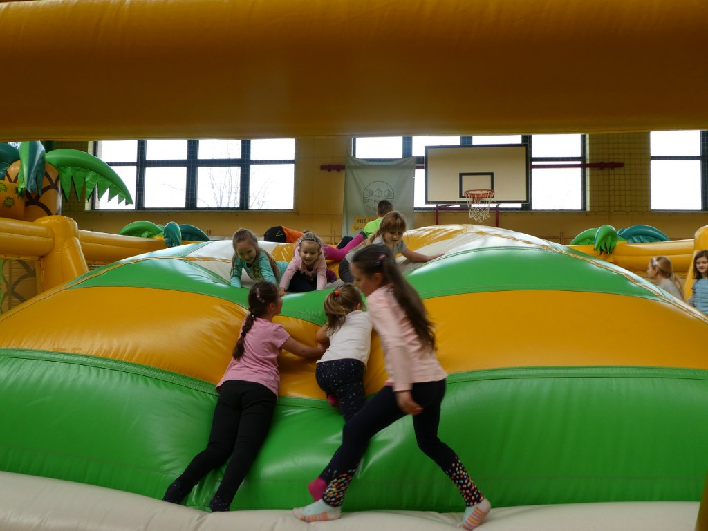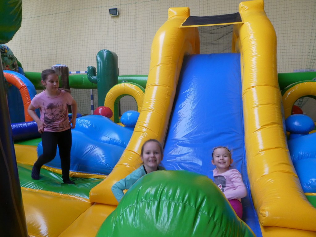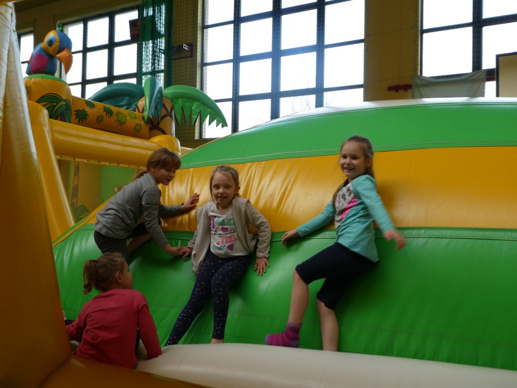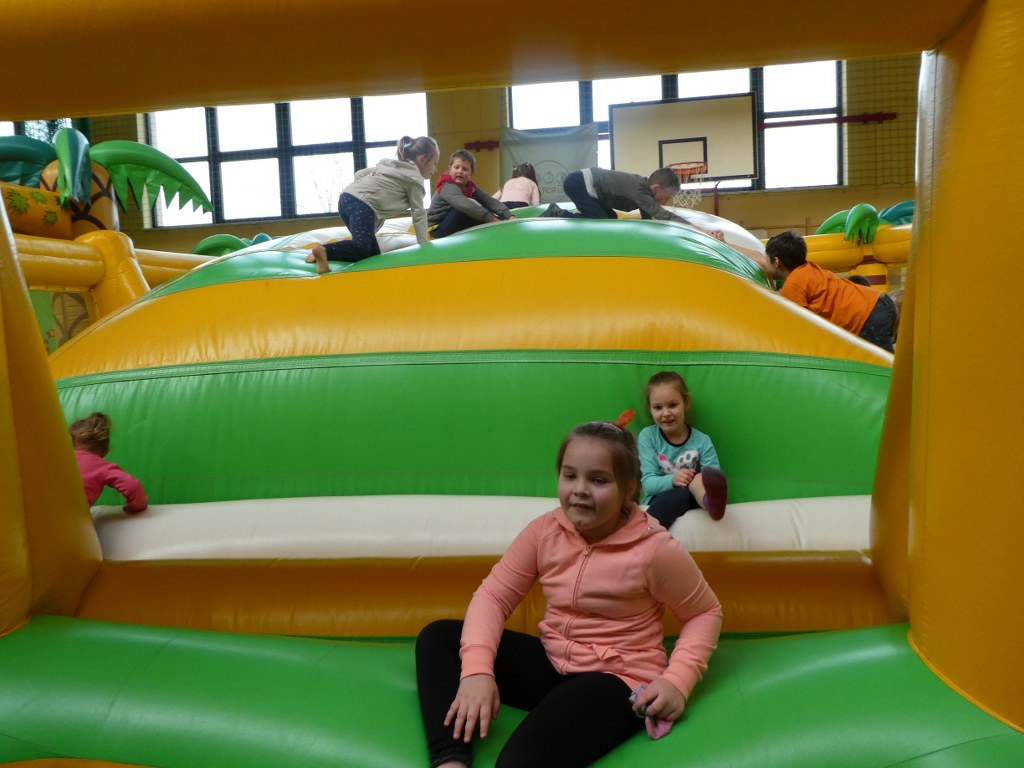 25 stycznia kilkunastu uczniów z naszej szkoły bawiło się na dmuchnych zamkach w hali sportowej w Gaci. Dzieci korzystały z dmuchanych zjeżdżalni, tzw. suchych basenów, skakały na dmuchanych poduszkach i specjalnych placach zabaw. Zmęczone, ale w bardzo dobrych nastrojach wróciły do domów. Dziękujemy organizatorom za udostępnienie tych atrakcji.