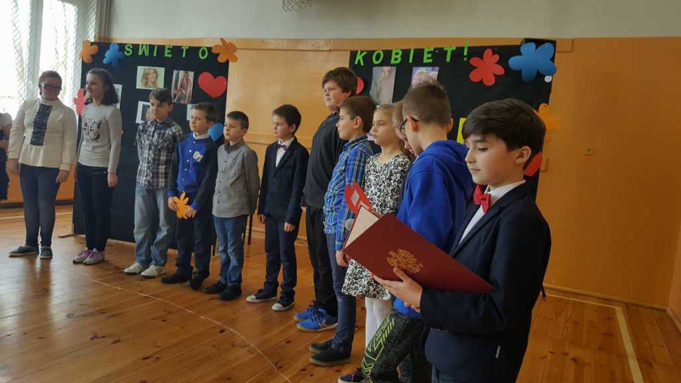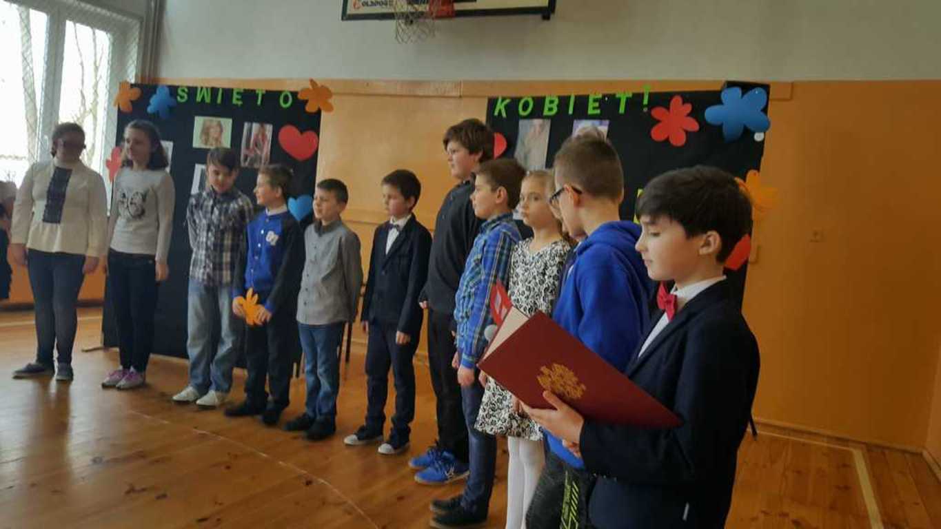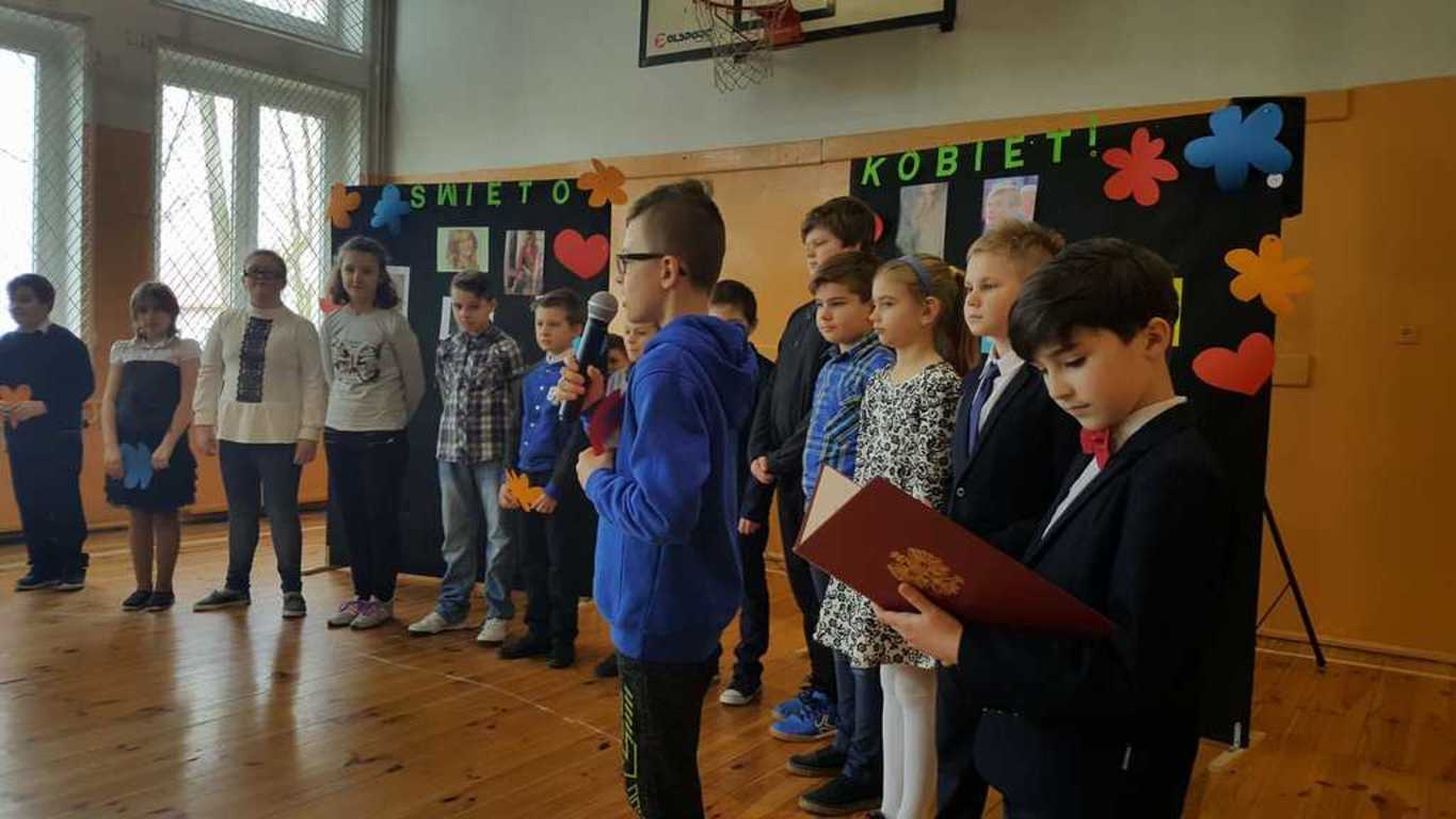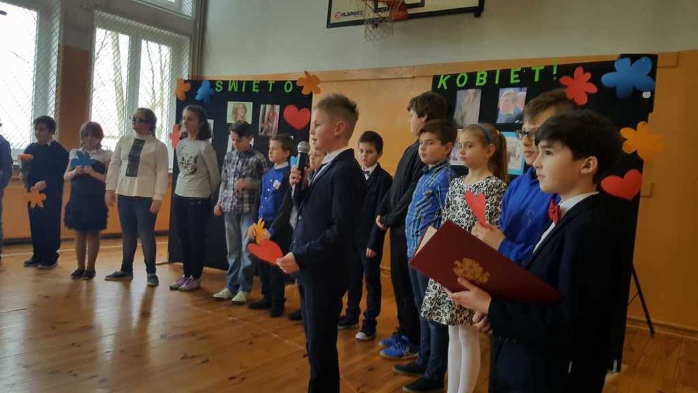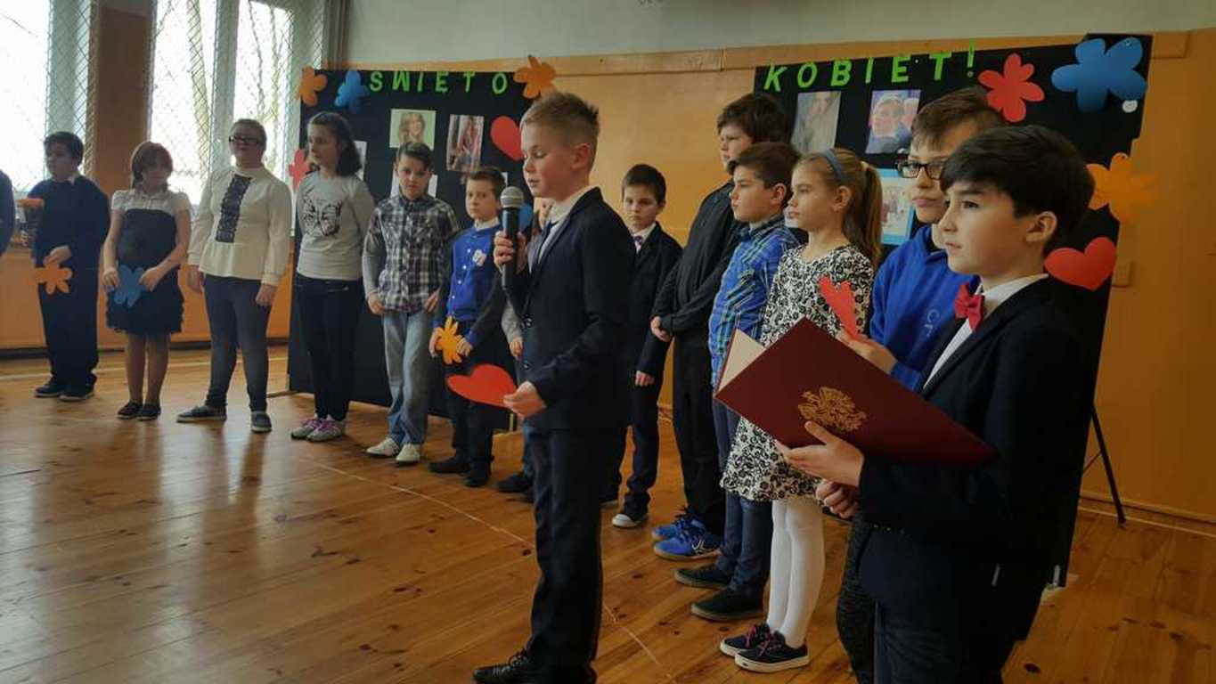 Międzynarodowy Dzień Kobiet byl okazją do zauważenia roli kobiet w dzisiejszym świecie. Uczniowie z klasy IV pod kierunkiem swojego wychowawcy, pana Franciszka Koziarskiego, przygotowali uroczystą akademię, w której piosenkami i wierszami uczcili nasze panie i dziewczęta.