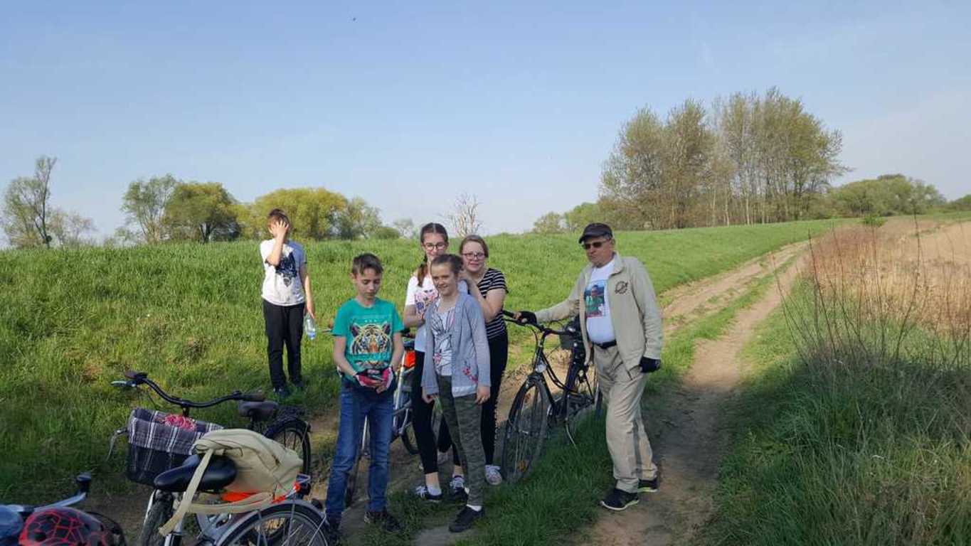 W ostatniej chwili zmontowała sie grupa chętnych uczniów z kl. VI i z p.dyrektor i p.F.Koziarskim i pojechaliśmy rowerami do Ryczyna.