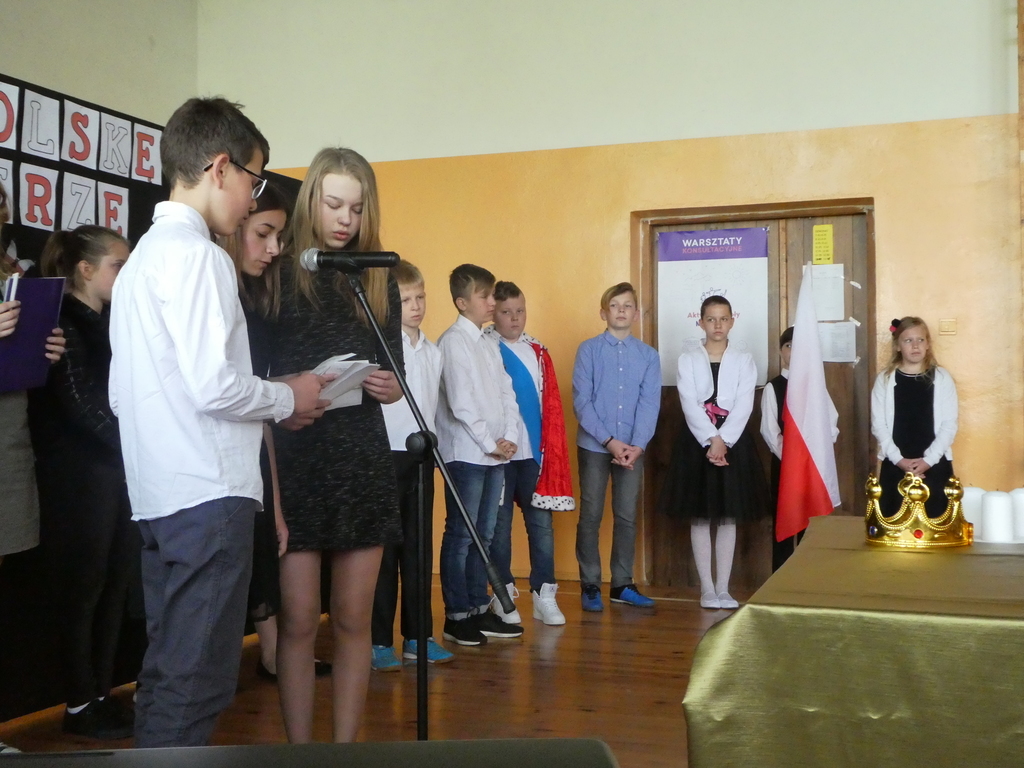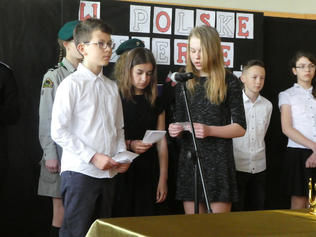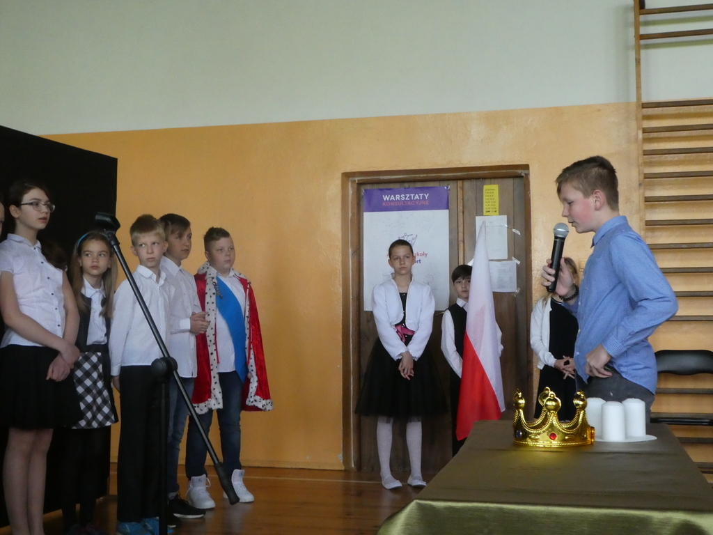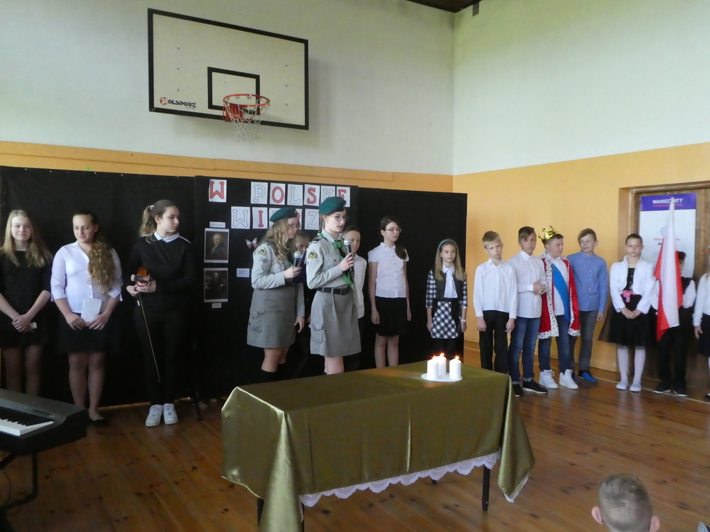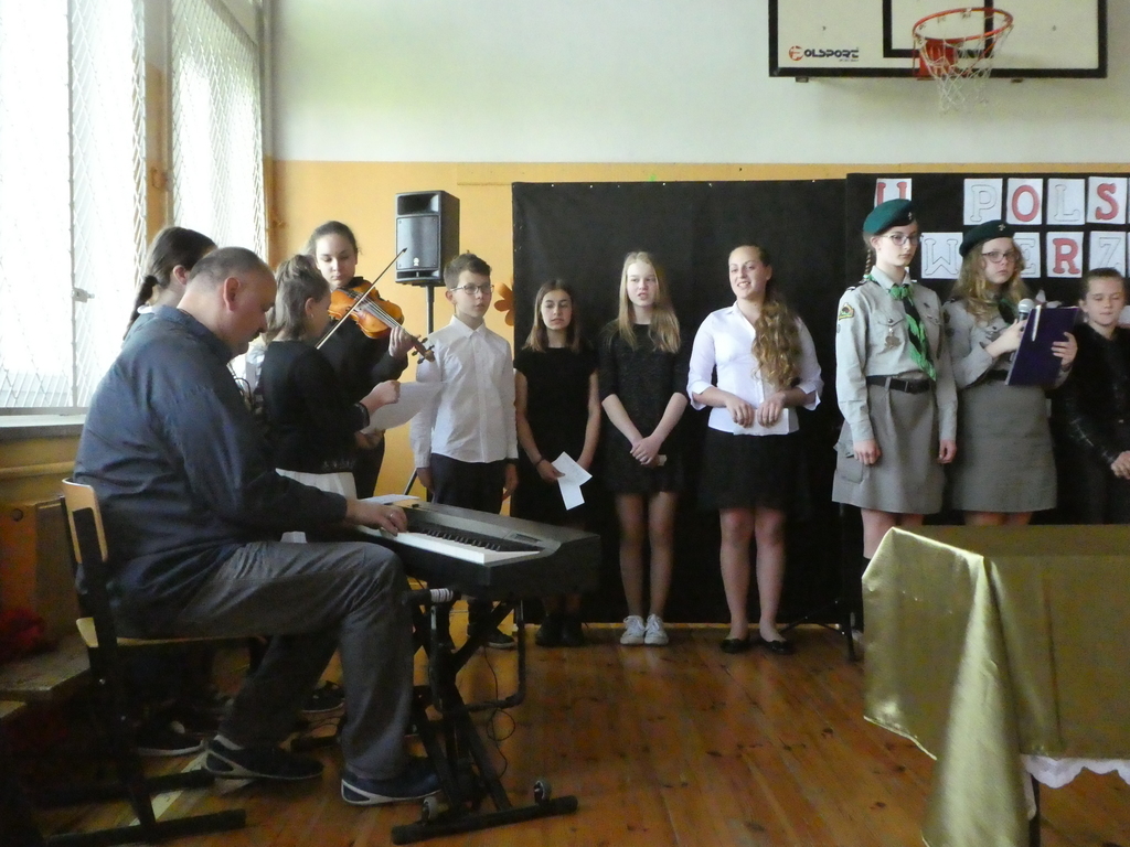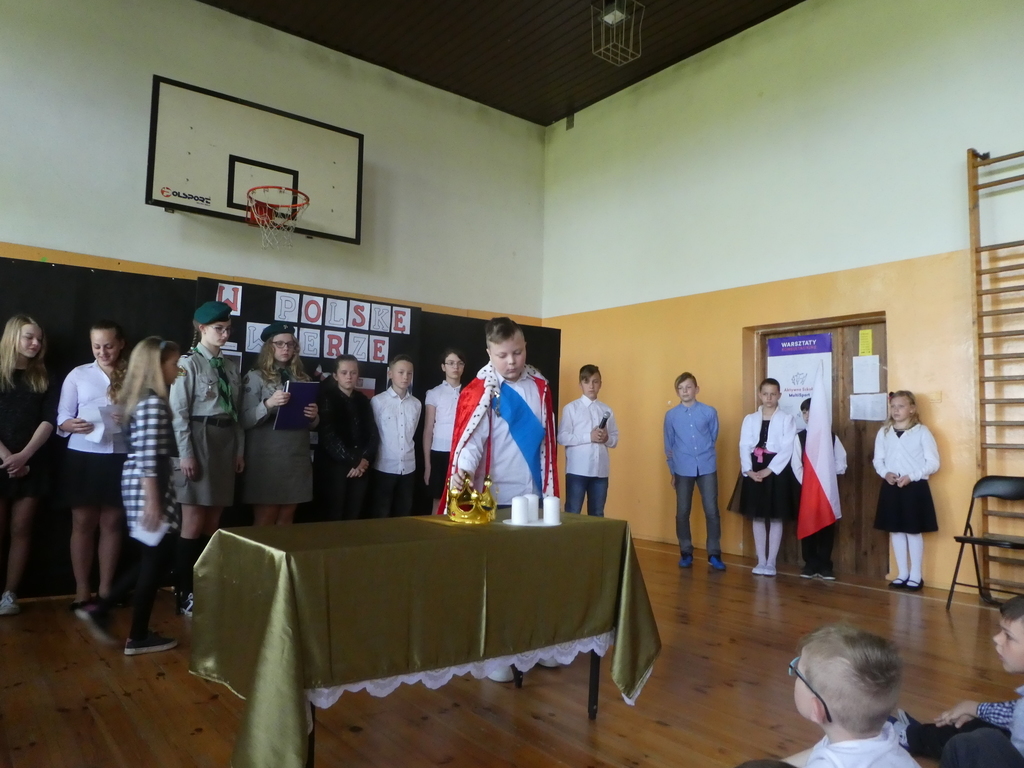 Kto Ty jesteś, Polak mały... tym wierszem zakończył się uroczysty apel poświęcony rocznicy uchwalenia Konstytucji 3-go Maja. W czasie apelu poznaliśmy krótką historię Polski, naszej ojczyzny. Apel rozpoczął się odśpiewaniem hymnu polskiego przy akompaniamencie pana Jacka Chlebnego. Następnie wysłuchalismy pięknej interpretacji Majowej Jutrzenki w wykonaniu naszego chóru i gry na skrzypcach. Aktorzy spisali się na medal.