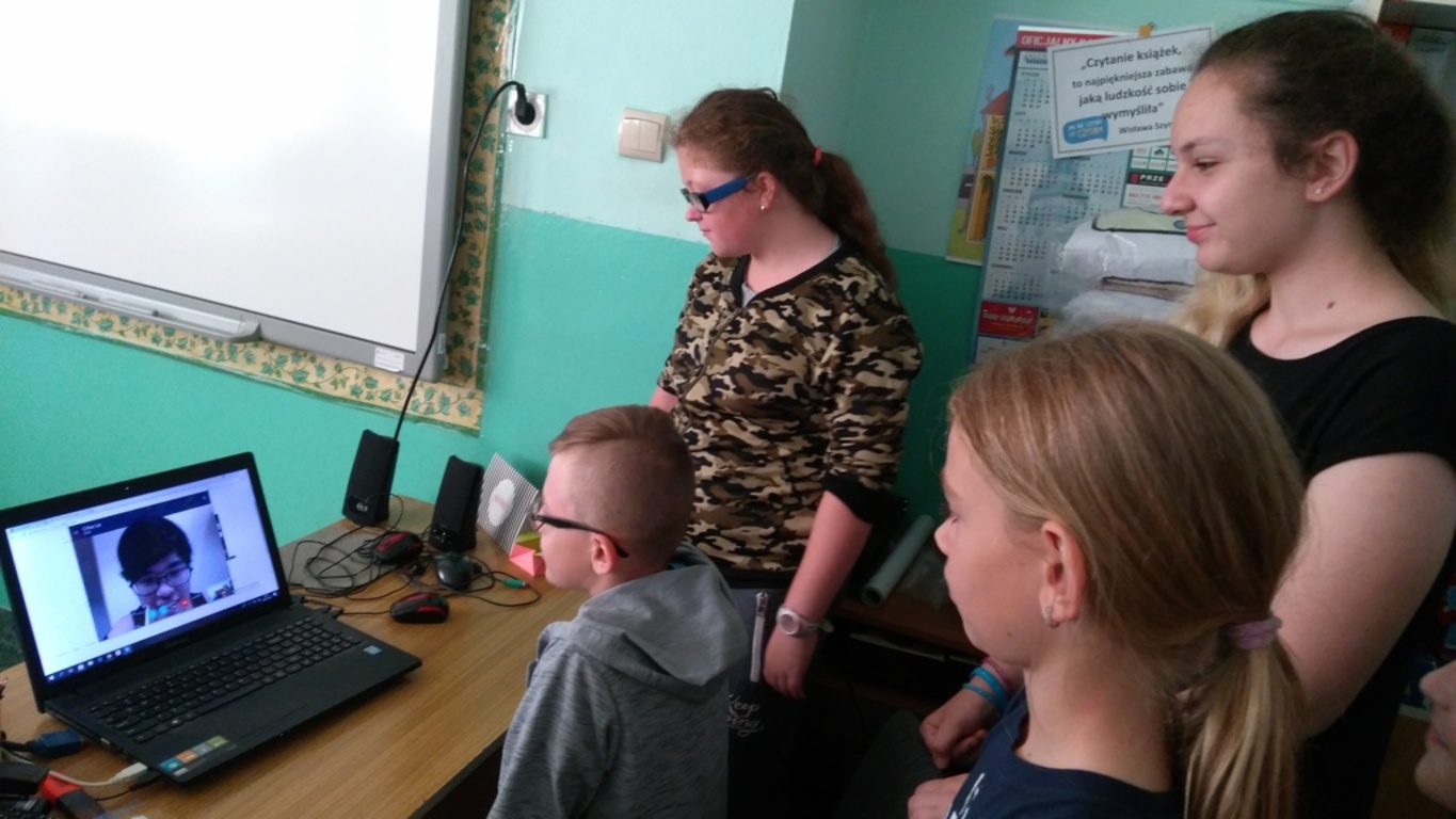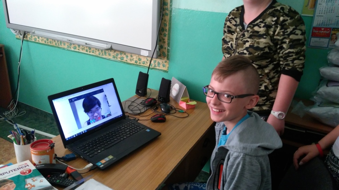 W poniedziałek 18 czerwca chętni uczniowie odbyli video-rozmowę z goszczącą w naszej szkole rok temu wolontariuszką z Hong Kongu - Chloe Lai. Dzieci zadawały pytania w języku angielskim. Pytały ją m.in. o plany zawodowe, wakacyjne, pogodę, zainteresowania, w tym piłką nożną, sprawdzały czy pamięta ich imiona. Ku zaskoczeniu wszystkich, Chloe zapamiętała większość uczniów. Zadawała też swoje pytania, zarówno dzieciom, jak i paniom nauczycielkom: M. Piaseckiej-Galej i K.Szyszce. Wszyscy mamy nadzieję, ze nas jeszcze odwiedzi.