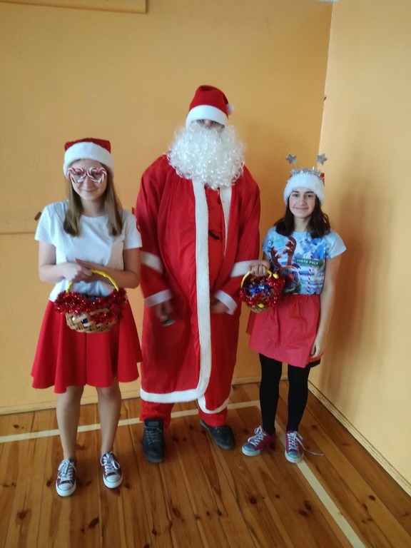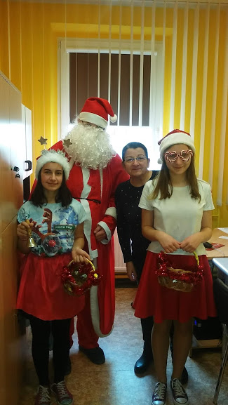 Dziś w szkole było wesoło i radośnie. Uczniowie czekali na św.Mikołaja, który przybył, prosto z dalekiej północy. Przybył do starszych i do młodszych uczniów. Na korytazru było też widać pomocników Mikołaja, ubranych w czerwone czapeczki, bo w niektórych klasach uczniowie wcielili sie w rolę Mikołajów. Do zobaczenia za rok, Mikołaju!