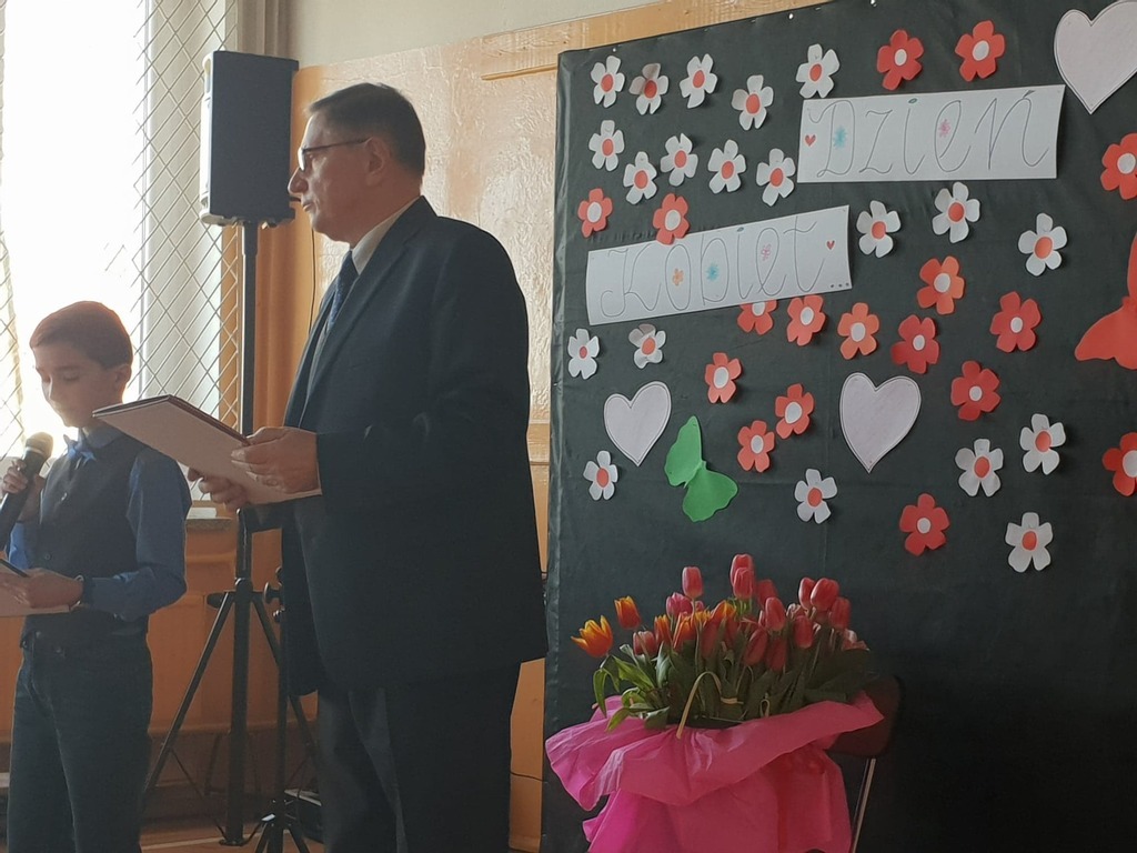 Uroczysty apel, przygotowany przez p.Franciszka Koziarskiego wraz z uczniami uświetnił dzisiejszy dzień. Koncert instrumentalny i wokalny dopełnił życzenia, a kwiaty od rady rodziców dla Pań i dziewczyn wzruszył każdą z nich.