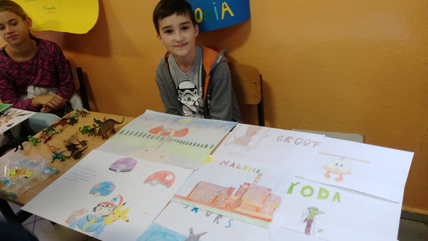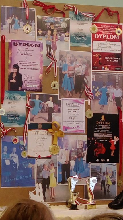 Ania Głodzik, która przygotowała pokaz swoich rysunków, psima kaligraficznego, Natalia Grudzińska - rysunki i obrazy, Mateusz Pustelnik - kolekcję dyplomów i medali za osiągnięcia sportowe, Martyna Reszczyńska - magnesy na lodówkę, Krzesimir Terlecki - rysunki praz zbiór dinozaurów, Miłosz Danowski pokazał jak szybko można ułożyć kostę, Fabian Węglarz - dyplomy i puchar za zawody wędkarskie, Filip Węglarz - puchary i dyplomy za osiągnięcia wędkarskie, Mateusz Dworak - puchary i medale, także za zawody wędkarskie. Filip Roćko zagrał na skrzypcach kilka nanych utworów, m.in. Despacito, zaś Szymon Sucharski wraz z tatą zaprosił wszystkich uczniów i nauczycieli na specjalną prezentację o swojej karierze młodego tancerza (gazetka, film, rekwizyty, odczyt). Mogliśmy też obejrzeć kolekcję magnesów p. Teresy Stolf.