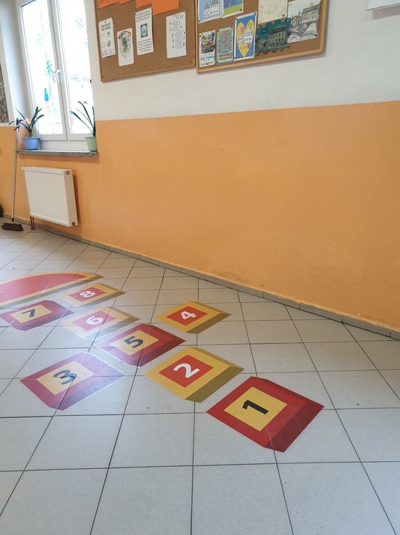 Na korytarzu szkolnym zamontowano gry podłogowe, Gry w klasy oraz Warcaby. Przerwy nie muszą być nudne! Życzę udanych zabaw i rozgrywek.