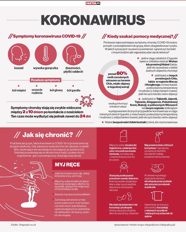 Z punktu widzenia zagrożenia epidemiologicznego Główny Inspektor Sanitarny nie zaleca podróżowania do: Chin oraz Korei Południowej, Włoch (w szczególności do regionu Lombardia, Wenecja Euganejska, Piemont, Emilia Romania, Lacjum), Iranu, Japonii, Tajlandii, Wietnamu, Singapuru i Tajwanu. Więcej informacji w komunikacie z 25 lutego br. na stronie GIS.