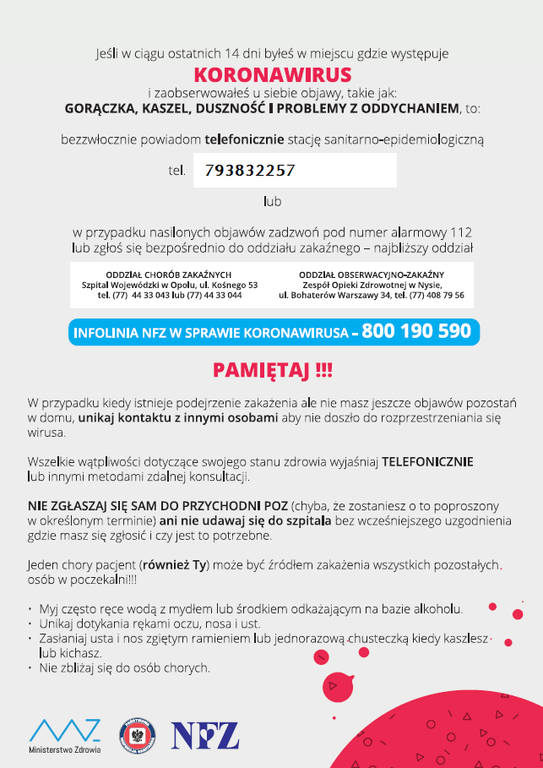 W przypadku wystąpienia tych symptomów należy bezzwłocznie, telefonicznie powiadomić stację sanitarno-epidemiologiczną lub zgłosić się bezpośrednio do oddziału zakaźnego lub oddziału obserwacyjno-zakaźnego. Więcej informacji na stronie GIS.