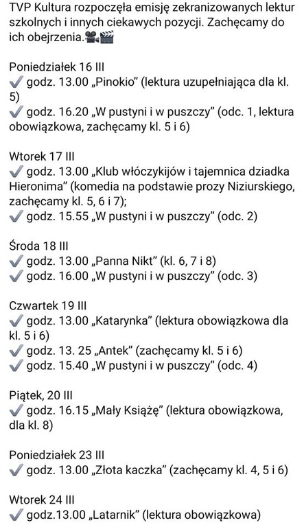 W wolnej chwili obejrzyj ciekawe filmy, lektury w telewizji, zadzwoń do kolegi/koleżanki.