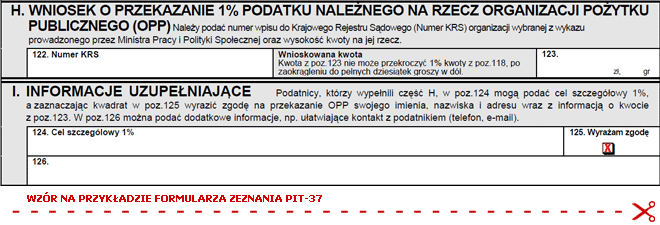 POZ. 125. X- proszę wyrazić zgodę na powiadomienie nas o przekazanej kwocie