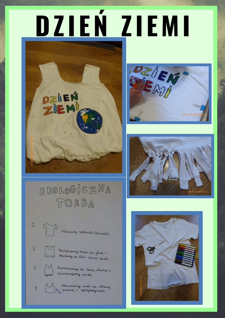 22 kwietnia 2021 roku odbył się konkurs promujący obchody Światowego Dnia Ziemi. Jako pracę konkursową należało wykonać torbę na zakupy z ekologicznych materiałów, praktyczną i z motywem podkreślającym obchody Światowego Dnia Ziemi 2021. Projekt i poszczególne etapy pracy należało przedstawić w formie kolażu ( 4- 6 zdjęć).
