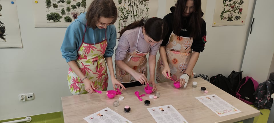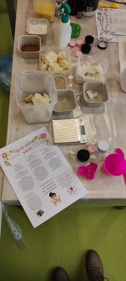 W dniu 04.11.2021 r.uczniowie klasy 7 i 8 pojechali na warsztaty do miejscowości Krzyżowice znajdującej się w województwie opolskim. Byliśmy podzieleni na dwie grupy - dziewczyny i chłopców. Dziewczyny miały warsztaty o tematyce kosmetycznej- tworzyły kosmetyki, które wykonywane były z naturalnych składników. Zrobiliśmy balsam do ust, korektor oraz puder w kremie. Wszystkie uważnie słuchałyśmy informacji, które przekazywała nam Pani prowadząca - Józefa. Po skończeniu robienia danego produktu Pani tłumaczyła, jak go używać. Na koniec dostaliśmy w gratisie mydełko z Mydlarni Pani Józefy. Bardzo zainteresowały mnie te warsztaty i słyszałam od reszty dziewczyn, że też im się podobały. Podobały mi się, ponieważ dowiedziałam się wielu przydatnych rzeczy oraz stworzyłyśmy same kosmetyki, które są w 100% naturalne.