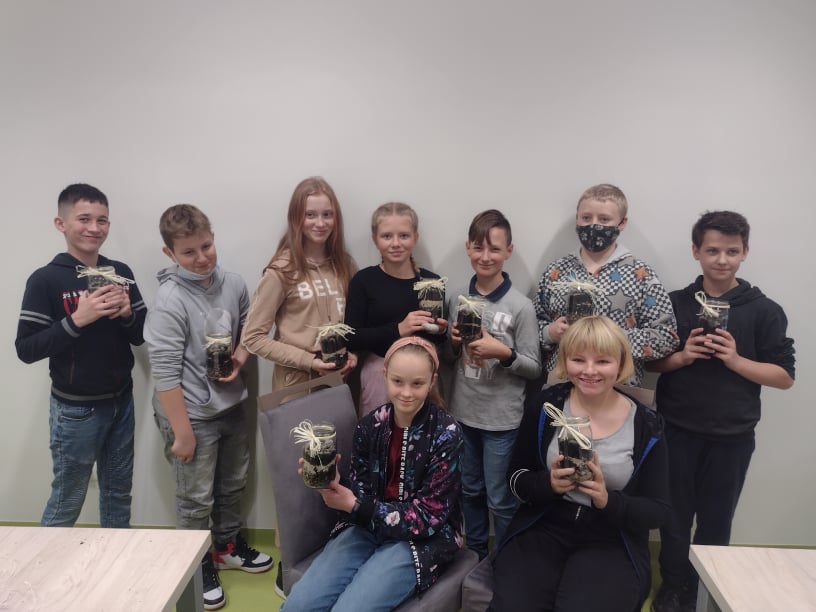 Pierogi ruskie w wykonaniu uczniów smakowały wybornie, a słoiczki z roślinkami prezentują się oryginalnie. Brawo!