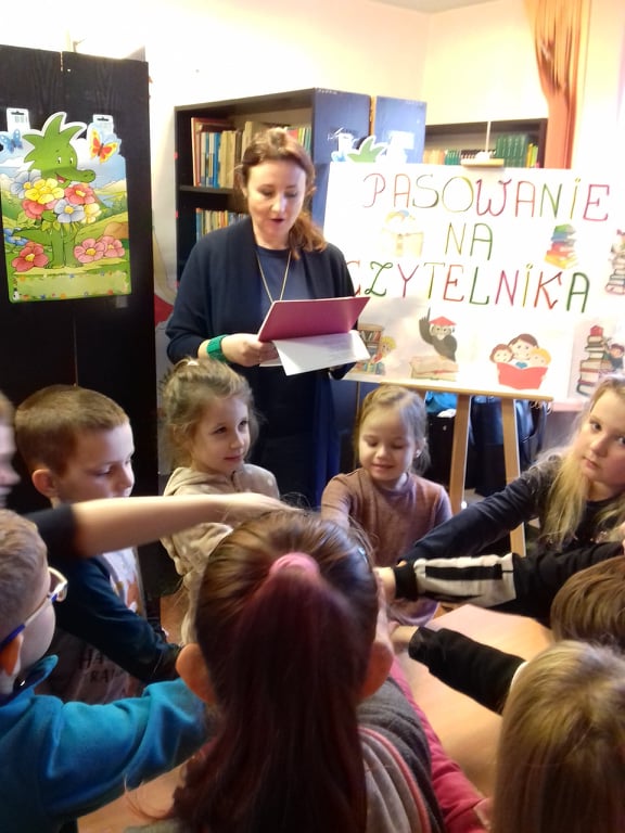Dnia 9 grudnia 2021 r. Klasa I odbyła pierwszą wizytę w bibliotece szkolnej. Na początku uczniowie zapoznali się z regulaminem czytając w punktach "O co prosi książka ?". W dalszym etapie nastąpiło uroczyste ślubowanie poprzez składanie przyczeń oraz pasowanie na czytelnika szkolnej biblioteki w Chwalibożycach. Pani bibliotekarka pogratulowała pierwszoklasistom wręczając im dyplomy oraz upominki. Na zakończenie uczniowie wypożyczyli wybrane książki do domu.