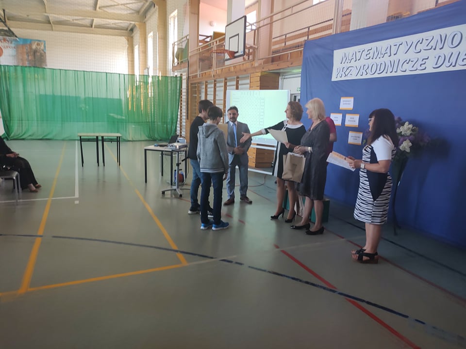 Naszą szkołę na powiatowym konkursie reprezentowali Krzesimir i Eryk z klasy 8. Konkurs odbywał się w szkole w Bystrzycy, gdzie udali się autobusem z p.Wiolettą Lubczyńską. Zagadnienia z geografii, biologii, fizyki i chemii a także matematyki sprawdzane były w rózny sposób, np. krzyżówki, doświadczenia, testy czy rozpoznawanie eksponatów. Atmosfera konkursu była bardzo przyjazna, a dla wszystkich był smaczny poczęstunek. Ze szkół powiatu olawskieggo nasz duet uplasował się na wyskom 4. miejscu. Gratulujemy!