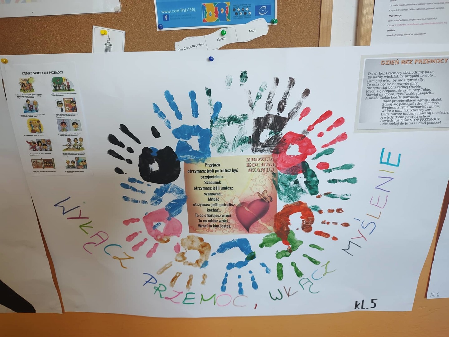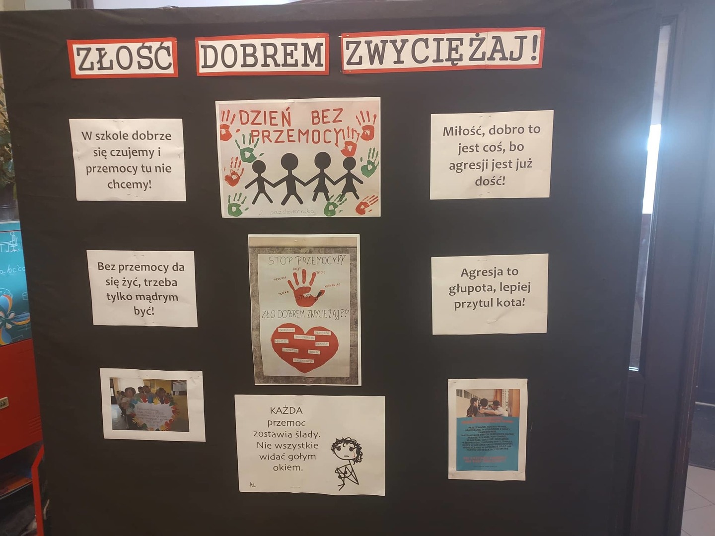 W każdej klasie zostały przeprowadzone pogadanki i dyskusje na temat rodzajów agresji i jej negatywnych skutków. Również uczniowie w swoich klasach wykonywali plakaty z hasłem nawiązującym do tego dnia. Wszyscy spisali się na medal i zostali nagrodzeni. W tym dniu zostały rozdane nagrody indywidualne uczniom, którzy wykonali najładniejsze prace plastyczne.