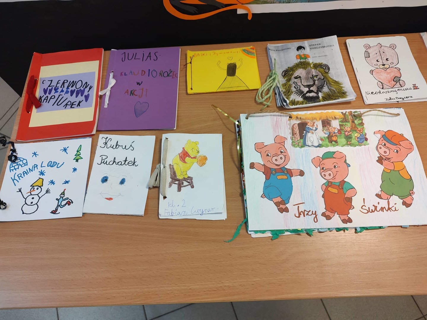 - w klasach młodszych- za wykonanie swojej ulubionej książeczki otrzymały wysokie miejsca dzieci z oddziału przedszkolnego, a są to: Krzysztof Poremba, Artur Zając, Julia Igras oraz Julia Sucharska i Maja Cwynar. Na wyróżnienia także zasługują: Marcel Grabowiecki (kl.1), Fabian Cwynar (kl.2) oraz z kl.4 Klaudia Staniszewska i Zofia Bugiera;