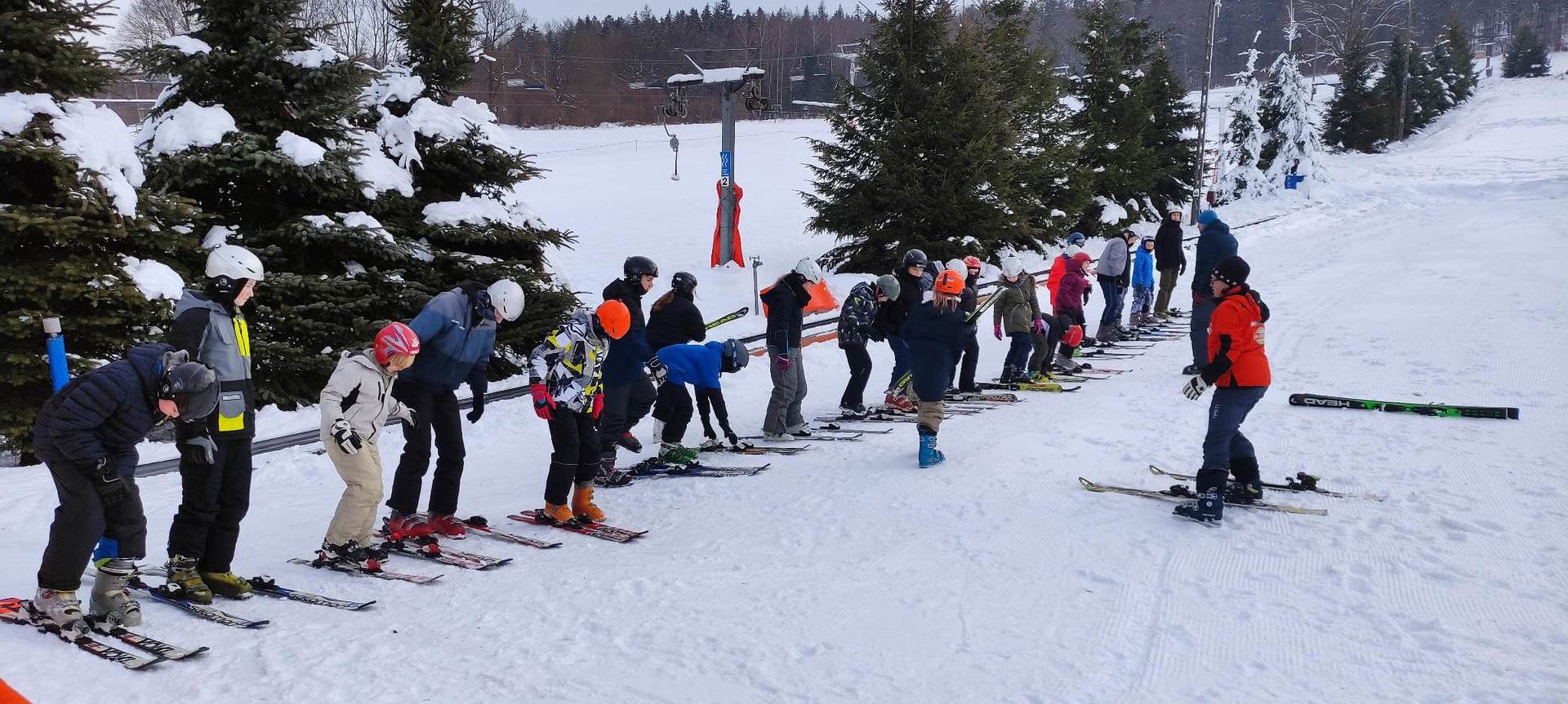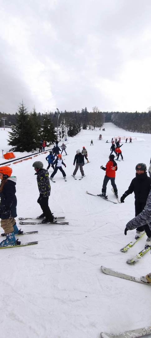 Wycieczka narciarska do Lądka Zdrój Uczniowie klas 4-8 wybrali się na pierwszą wycieczkę narciarska, w której mieli szansę od podstaw i pod okiem instruktorów nauczyć się jazdy na nartach. Zwieńczeniem wysiłku i zabawy był naleśnik z dżemem i bitą śmietaną i gorąca herbata.