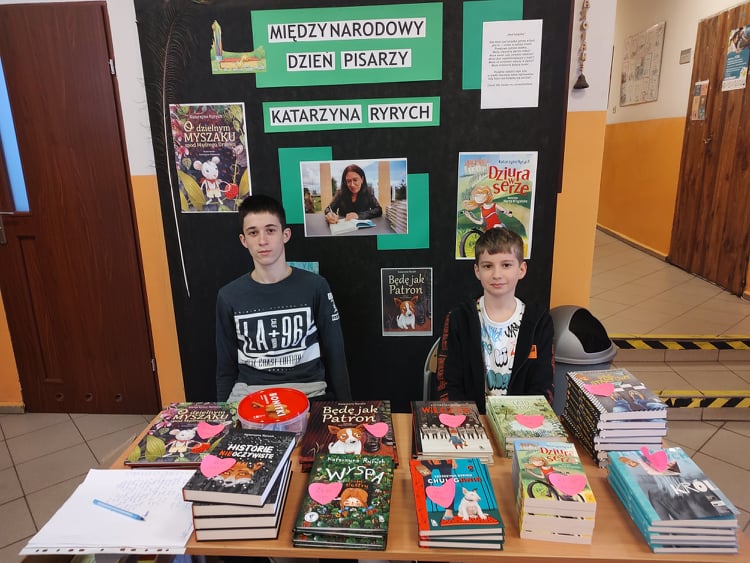 W dniu 13 kwietnia 2023r. w naszej szkole odbyła się uroczystość upamiętniająca Międzynarodowy Dzień Pisarzy, którego celem jest promowanie literatury oraz obrona wolności i rozwój społeczności pisarzy na całym świecie. Z tej okazji nasze zaproszenie przyjęła Pani Katarzyna Ryrych - krakowska pisarka i malarka, autorka licznych książek dla dzieci, młodzieży jak również i dorosłych. Ma w swoim dorobku wiele prestiżowych nagród i wyróżnień. Jej książki są popularne także za granicą, co świadczy o tym, że dzieci są wszędzie takie same- mają takie same marzenia, problemy, smutki i radości.