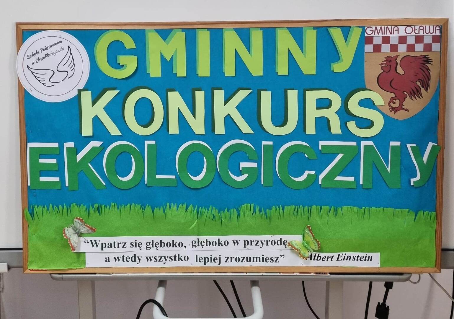 21 kwietnia, tuż przed Dniem Ziemi odbył się w Oławie Gminny Konkurs Ekologiczny. Uczniowie rozwiązywali test wiedzy ze znajomosci zagadnień ekologicznych i ochrony przyrody, omawiali pracę plastyczną a także wykonywali zadania praktyczne. Zadania polegały na rozpoznawaniu drzew, znajmości procesów recyclingu i parków narodowych. Naszą szkołę reprezentowali Szymon Sucharski i Michał Nowacki oraz praca zaprojektowana i wykonana przez Milenę Bugierę z kl.6.