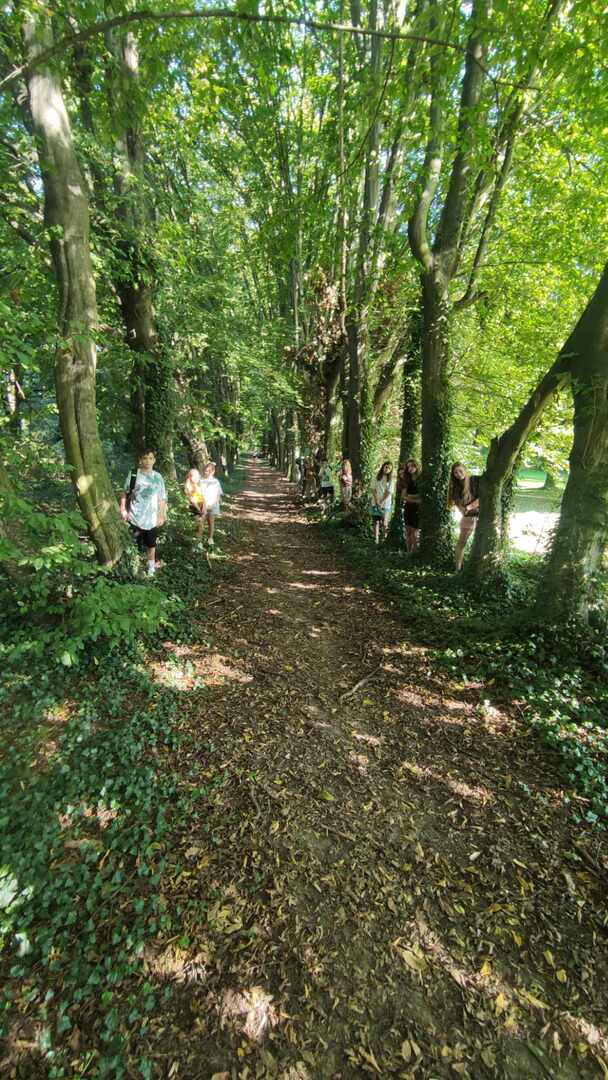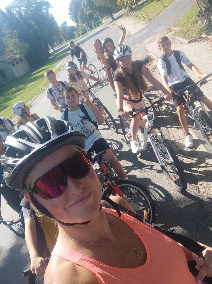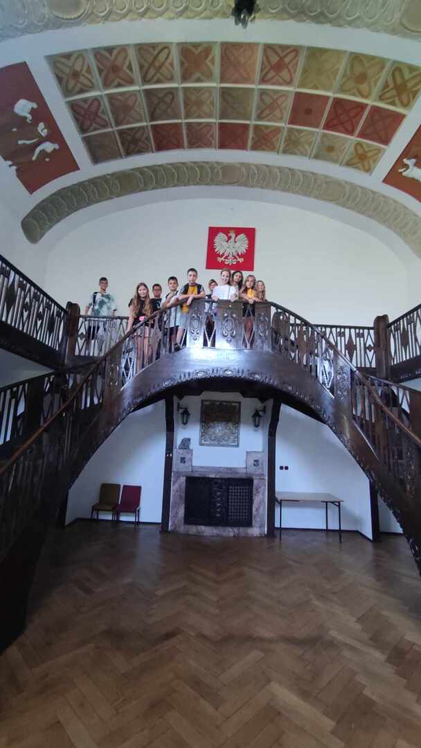 Poniedziałek rozpoczęliśmy rajdem rowerowym z klasą piąta i szóstą do Oleśnicy Małej, w której zwiedziliśmy pałac, jeden z największych na Dolnym Śląsku. Wewnątrz pałacu zobaczyliśmy dawną salę biblioteczną z oryginalnym belkowanym stropem, kartusz herbowy Hansa Yorcka von Wartenburga oraz rokokowy piec kaflowy. Na zewnątrz, poza majestatyczną bryłą, kartuszami herbowymi, rzadkim wiatrowskazem w kształcie pawia na wieży Zofii, obejrzeliśmy kamienne płyty średniowiecznego stołu sędziowskiego, nagrobek ulubionego konia feldmarszałka Siwka z Möckern i pomnik poległych podczas I Wojny Światowej