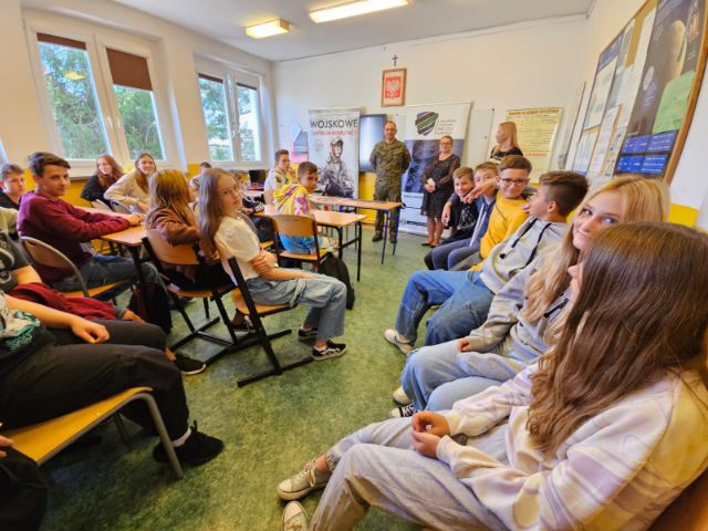 Dnia 20 września br. w naszej szkole w ramach doradztwa zawodowego odbyło się spotkanie z żołnierzem z Wojskowego Centrum Rekrutacji w Brzegu - kpt. Krzysztofem Krawczykiem.