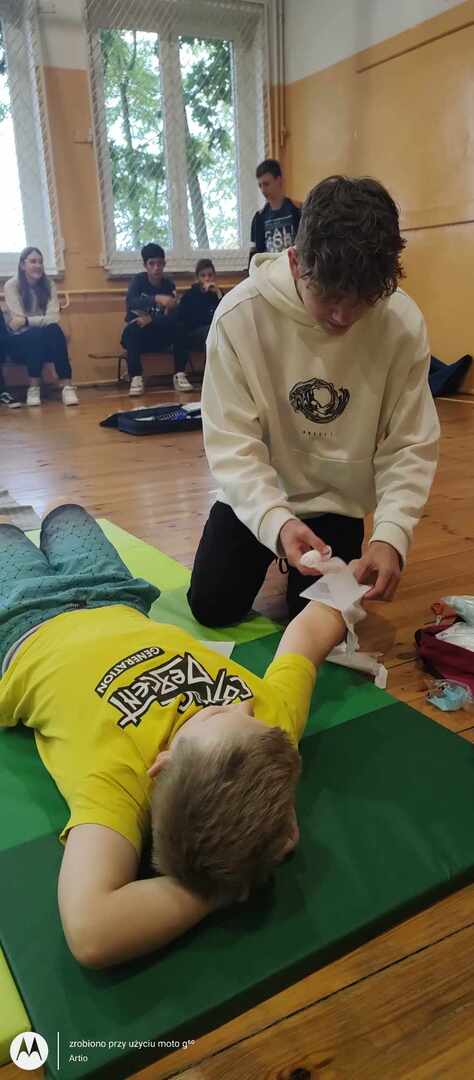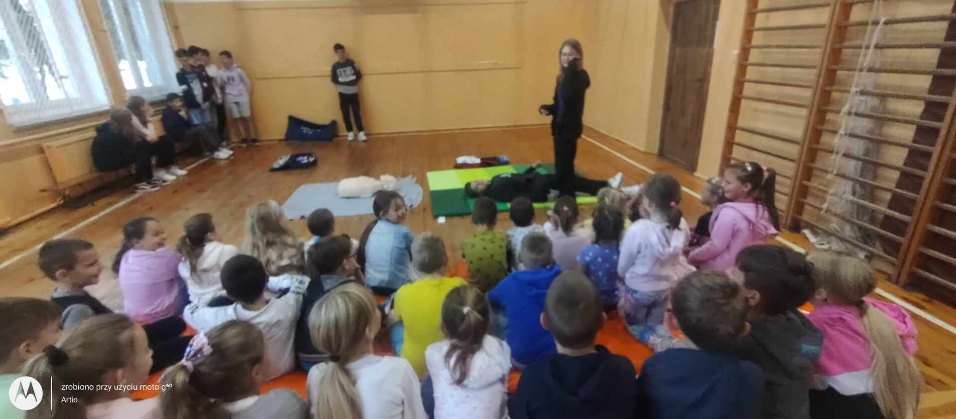 W związku z tak ważnym wydarzeniem uczniowie klasy VIII przygotowali warsztaty z Pierwszej Pomocy w których wzięli udział uczniowie klas 1-3. Uczestnicy dowiedzieli się czym jest pierwsza pomoc, dlaczego jest tak ważna i jakie są podstawowe zasady jej udzielania.