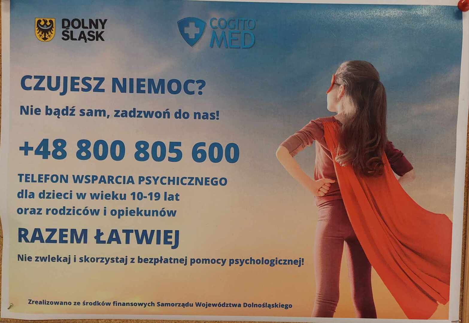Drugi program realizowany przez naszą szkołę to: „Program polityki zdrowotnej w zakresie profilaktyki zaburzeń psychicznych, w tym depresji oraz zapobiegania samobójstwom dla dzieci i młodzieży na terenie województwa dolnośląskiego. Jesteśmy przekonani, że uczestnictwo w tak ważnym projekcie pozwoli zadbać o zdrowie psychiczne uczniów naszej szkoły.