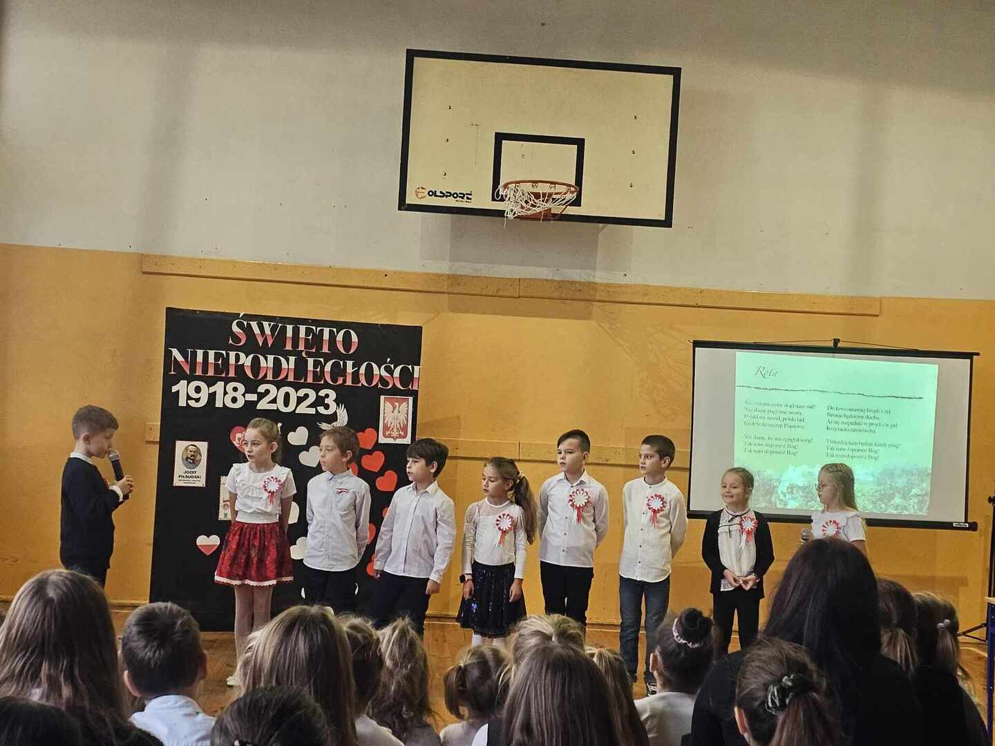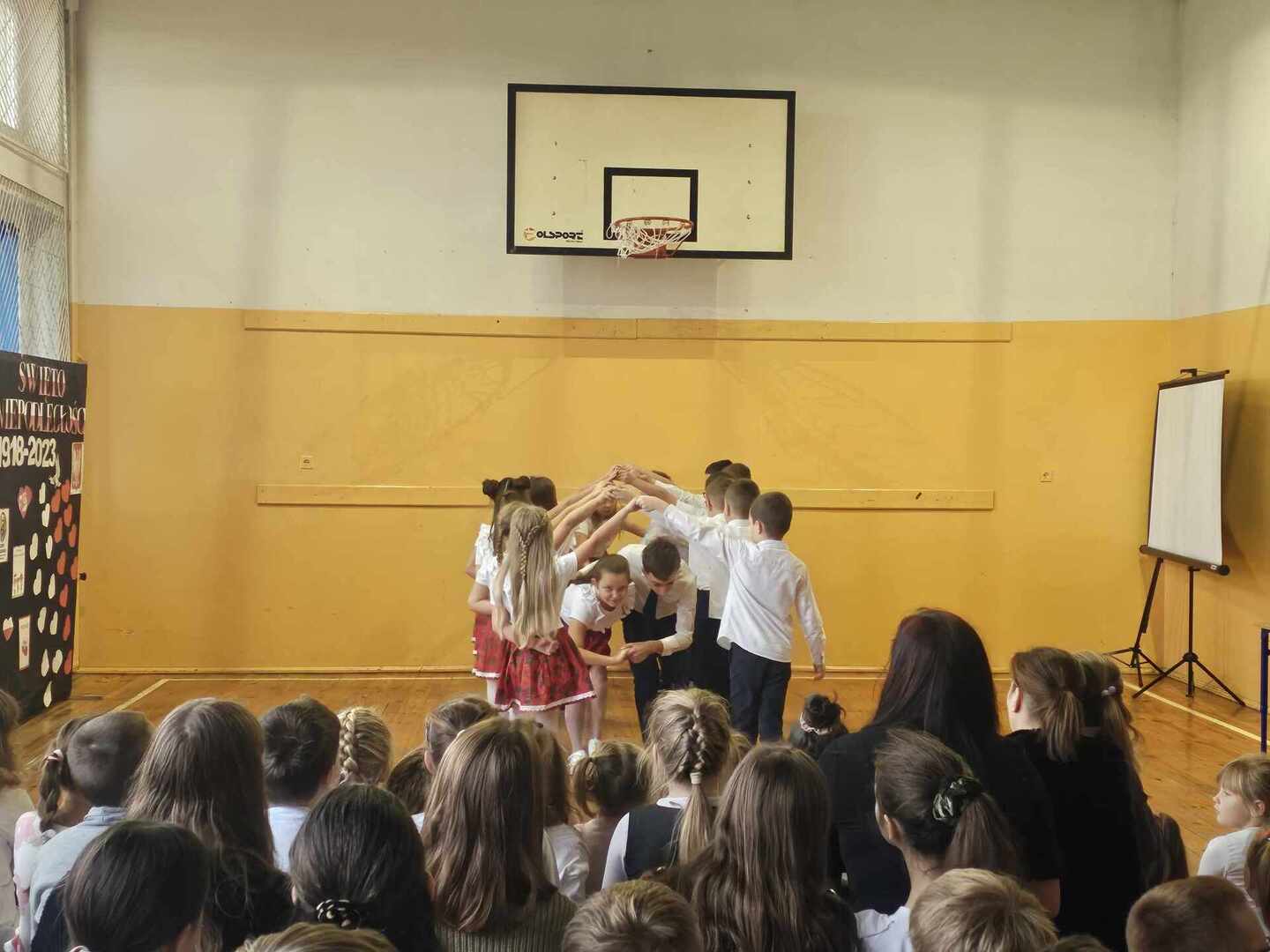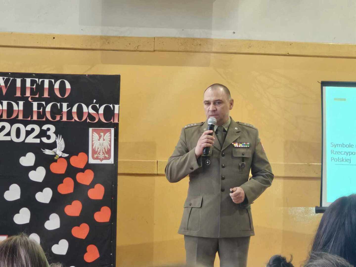 10 listopada w naszej szkole odbyły się uroczystości z Okazji Dnia Niepodległości Polski. Program artystyczny przygotowali uczniowie z kl. II i III. Wszyscy przybyli na uroczystość otrzymali również patriotyczne wstążki biało-czerwone, które z kolei przygotowała kl. VIII. Gościem specjalnym był kpt. Krzysztof Krawczyk z WCR w Brzegu, który wygłosił prelekcję nt. SYMBOLI NARODOWYCH, patriotyzmu i oddania sprawie najwyższej, jaką jest Ojczyzna.