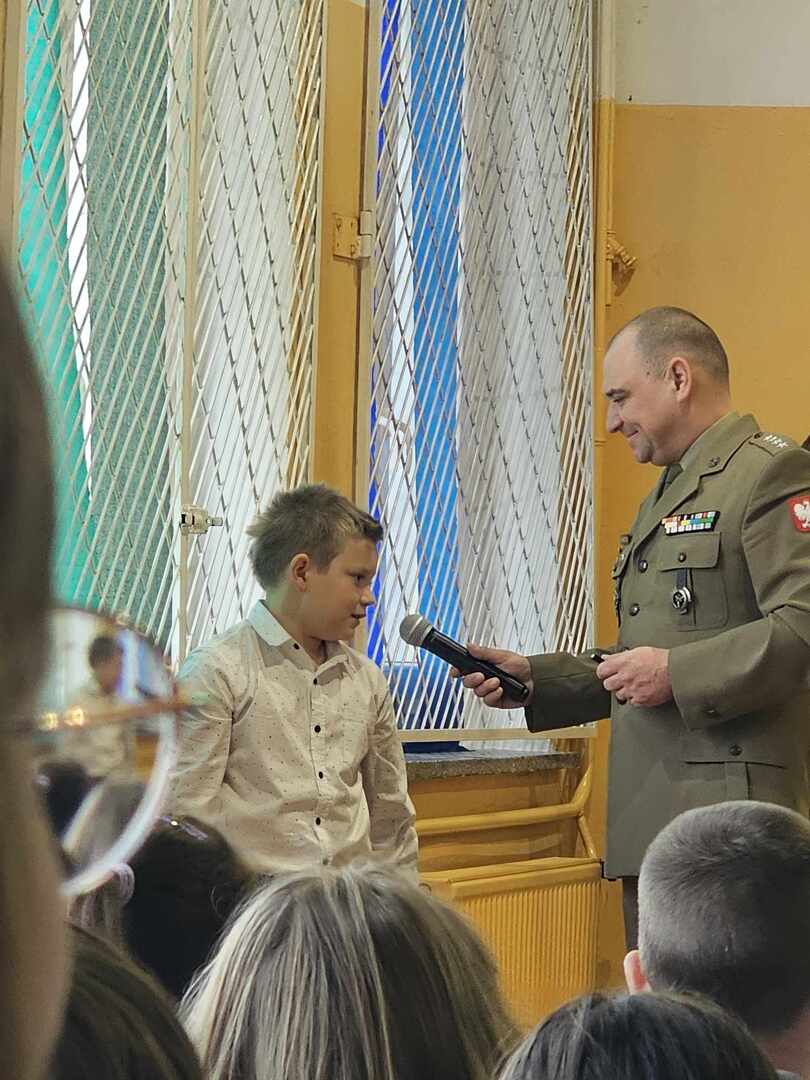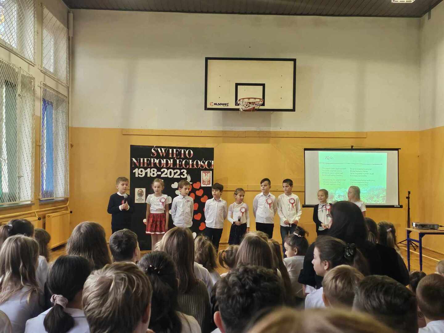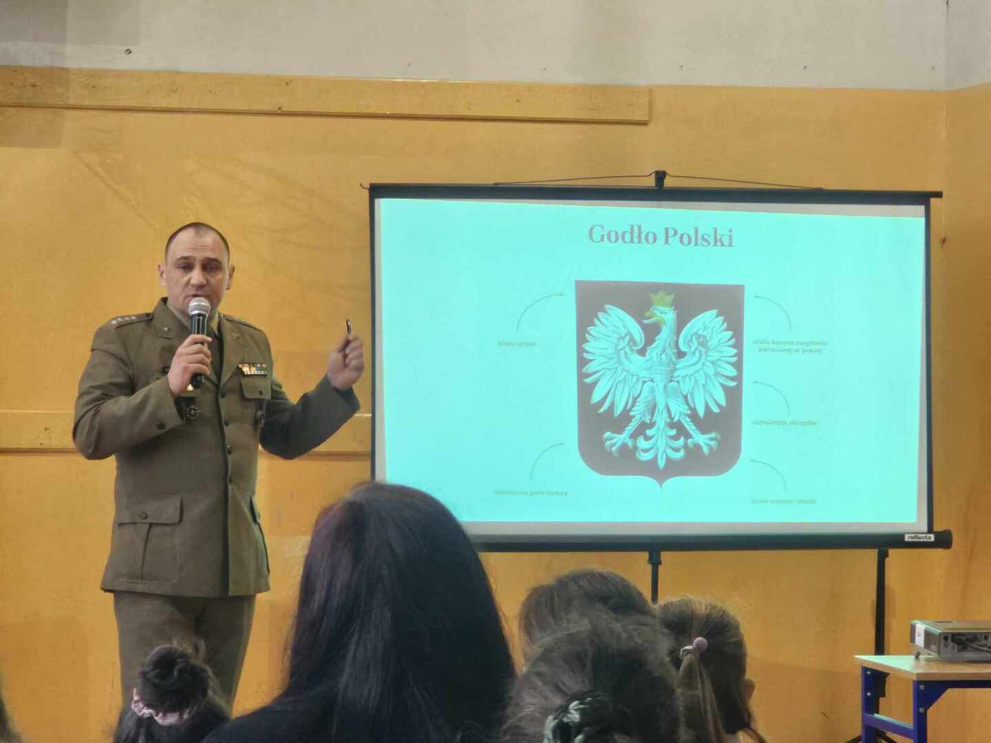 10 listopada w naszej szkole odbyły się uroczystości z Okazji Dnia Niepodległości Polski. Program artystyczny przygotowali uczniowie z kl. II i III. Wszyscy przybyli na uroczystość otrzymali również patriotyczne wstążki biało-czerwone, które z kolei przygotowała kl. VIII. Gościem specjalnym był kpt. Krzysztof Krawczyk z WCR w Brzegu, który wygłosił prelekcję nt. SYMBOLI NARODOWYCH, patriotyzmu i oddania sprawie najwyższej, jaką jest Ojczyzna.