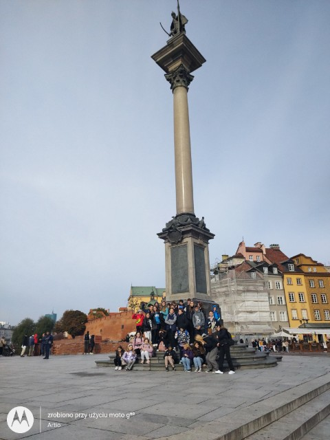 Zwiedzanie Warszawy rozpoczęliśmy od wizyty na Starym Mieście, gdzie znajduje się Kolumna Zygmunta III Wazy. Od razu pomaszerowaliśmy pod Zamek Królewski. Podziwialiśmy piękno budynku, który został zbudowany w stylu barokowo-klasycystycznym.