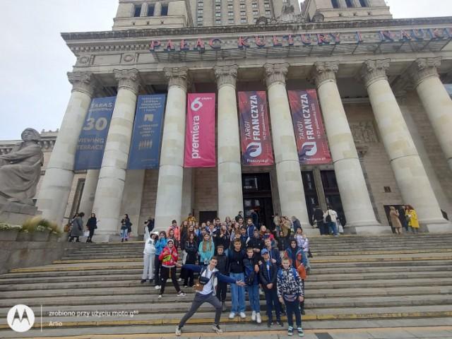 Potem powędrowaliśmy na ul. Świętojańską, gdzie mieści się Bazylika archikatedralna św. Jana Chrzciciela. Następnie pośpieszyliśmy na Rynek Starego Miasta. Po środku placu stoi pomnik Warszawskiej Syrenki. Później przeszliśmy przez ul. Piwną i Miodową i niebawem znaleźliśmy się przy Barbakanie. Następnego dnia udaliśmy się na spacer po Łazienkach Królewskich. Na wszystkich największe wrażenie zrobił Teatr na Wyspie. Wracając w kierunku autokaru skręciliśmy na Plac Piłsudskiego, by tam zobaczyć Grób Nieznanego Żołnierza Następnie zwiedzaliśmy stolicę z okien autokaru: przejeżdżaliśmy Traktem Królewskim, m.in. Alejami Ujazdowskimi, zobaczyliśmy budynki ambasad, sejmu i senatu. Ciekawym punktem wycieczki był wjazd na taras widokowy Pałacu Kultury i Nauki. Trzeciego dnia udaliśliśmy się do Centrum Nauki Kopernik, w którym robiliśmy różne eksperymenty i doświadczenia.