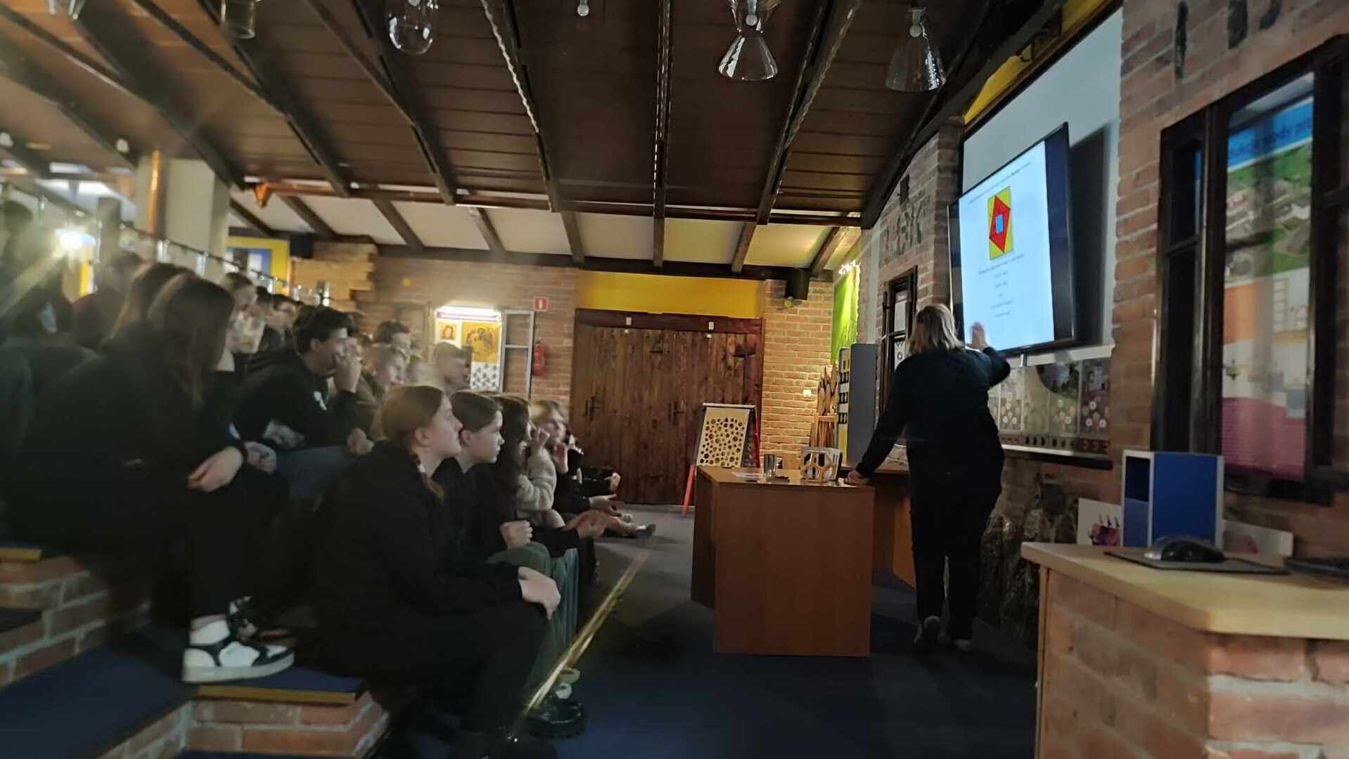 11 grudnia 2023 r. uczniowie z klas VII- VIII wybrali się do Parku Nauki i Techniki „Explora Park” w Wałbrzychu. Na początku odbyła sie lekcja, dzięki której poznaliśmy Twierdzenie Pitagorasa. Po części wykładowej dzieci mogły poznać owo twierdzenie w praktyce, przetestować wszystkie eksponaty, przeprowadzić proste i jednocześnie zaskakujące eksperymenty , każdy mógł również spróbować swoich sił w układaniu mozaiki czy rozwiazywaniu łamigłówek. Uczniowie musieli jeszcze pokonać labirynt luster, który okazał się nie takim łatwym zadaniem. Następnie udaliśmy się na lodowisko. Kiedy ubraliśmy łyżwy i weszliśmy na taflę lodowiska byliśmy w swoim żywiole. Dwie godziny spędziliśmy udoskonalając jazdę na łyżwach. Miło i wesoło spędziliśmy czas na lodzie i bezpiecznie wróciliśmy do domu.