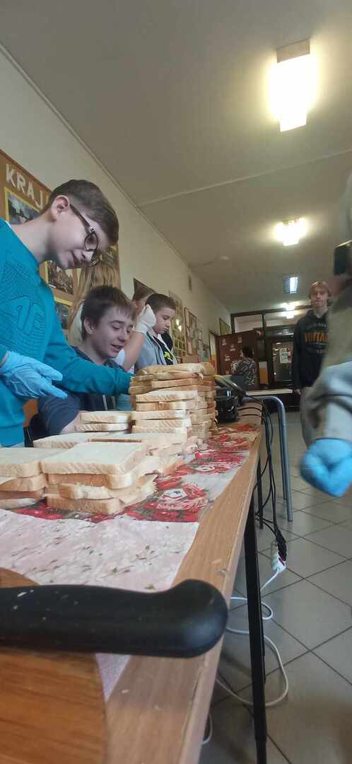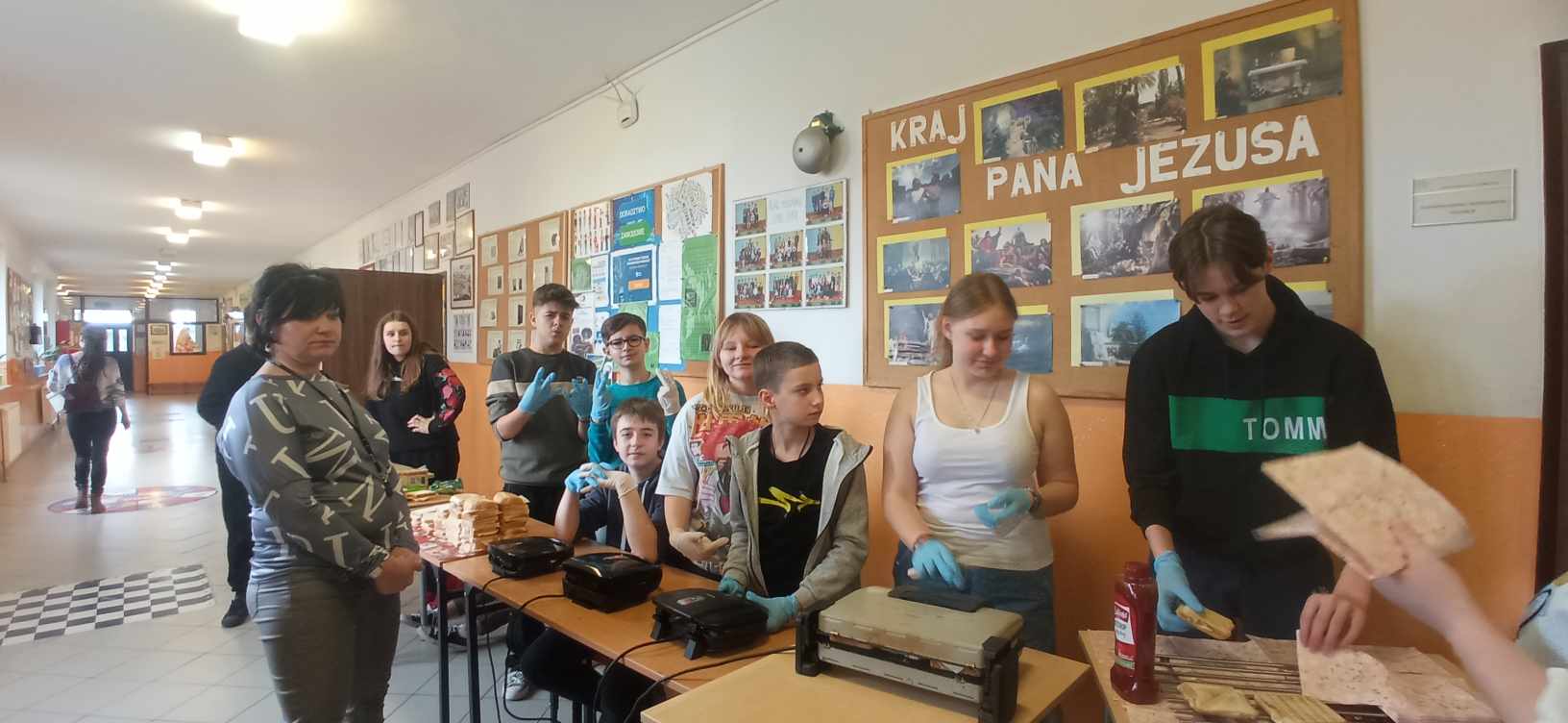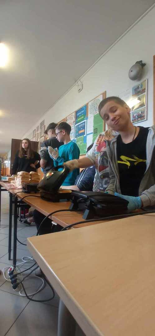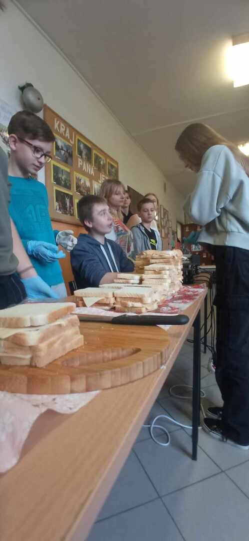 Klasa VII, już po raz trzeci, postanowiła pomagać sprzedajac przygotowane przez siebie tosty. Przypomnimy, że w ubieglym roku szkolnym uczniowie zbierali pieniadze na chorego chłopca - Piotrusia Hubera organizując akcję tydzień po tygodniu. W poniedziałek 11 marca na długiej przerwie uczniowie znów piekli tosty. Dochód zostanie w całości przeznaczony na leczenie chorego na dystrofię mięśniową Przemka Standio. Siódmoklasiści przynieśli do szkoły zakupione przez siebie chleby, sery, wędlinę, rękawiczki, serwety, a dodatkowo cztery osoby opiekacze. Tosty rozeszły się bardzo szybko, a uczniowie uzbierali w sumie 181 zł . Brawo klasa VII :)