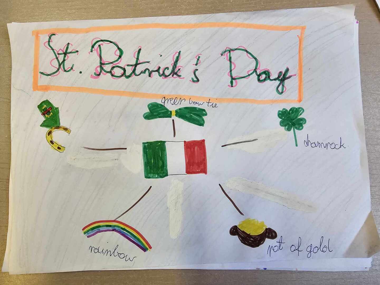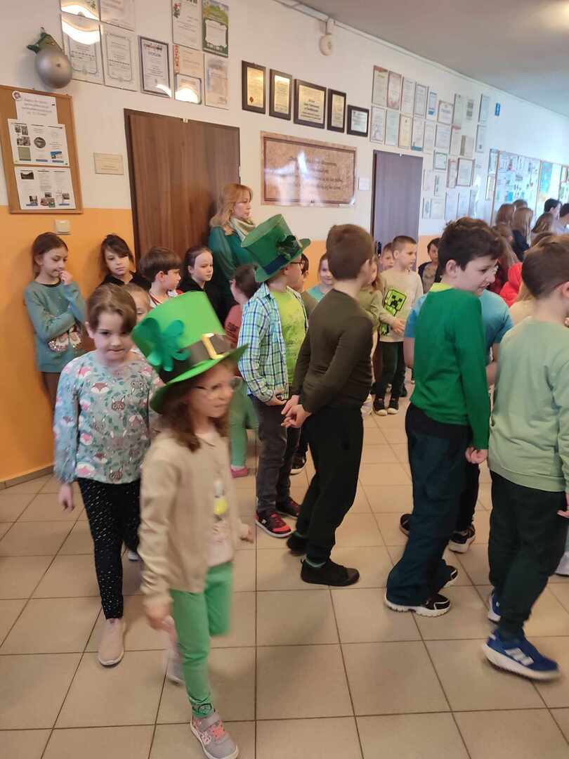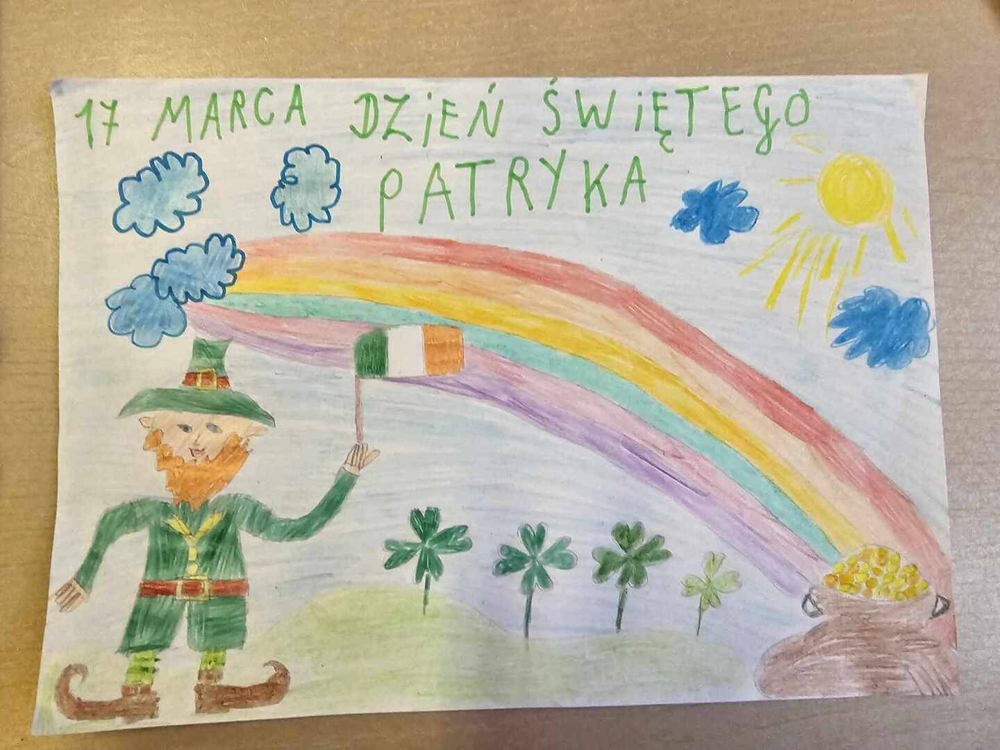 W piątek 15 marca w naszej szkole odbył się Dzień św. Patryka, patrona Irlandii. Uczniowie, zgodnie z irlandzką tradycją przyszli do szkoły ubrani na zielono. Lekcje języka angielskiego w tym dniu miały charakter językowo-kulturoznawczy. Dzieci rozwiazywały zagadki, łamigłówki, zapoznały się z życiem św. Patryka oraz irlandzkimi legendami. Młodsi obejrzeli film o skarbie ukryrym na końcu tęczy. Po długiej przerwie odbyla się parada wszystkich, którzy założyli na siebie coś zielonego. W tym dniu zaczęły napływać pierwsze prace na konkurs plastyczny o Irlandii ogłoszony kilka dni wcześniej. Uczniowie nadal zgłaszają swoje rysunki.