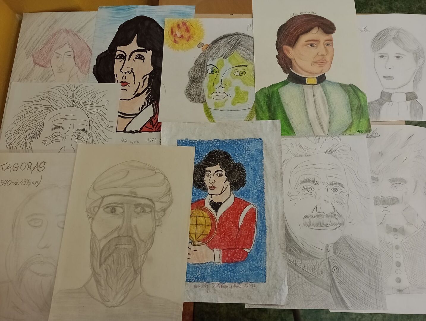 Nasi uczniowie przygotowali 12 prac plastycznych w konkursie pn. Portret słynnego matematyka, który jest organizowany przez Wydawnictwo GWO i skierowany dla uczniów klas 4-8 szkół podstawowych. Celem konkursu jest popularyzowanie wiedzy matematycznej, wzmacnianie umiejętności wyszukiwania informacji oraz rozwijanie kompetencji plastycznych.
