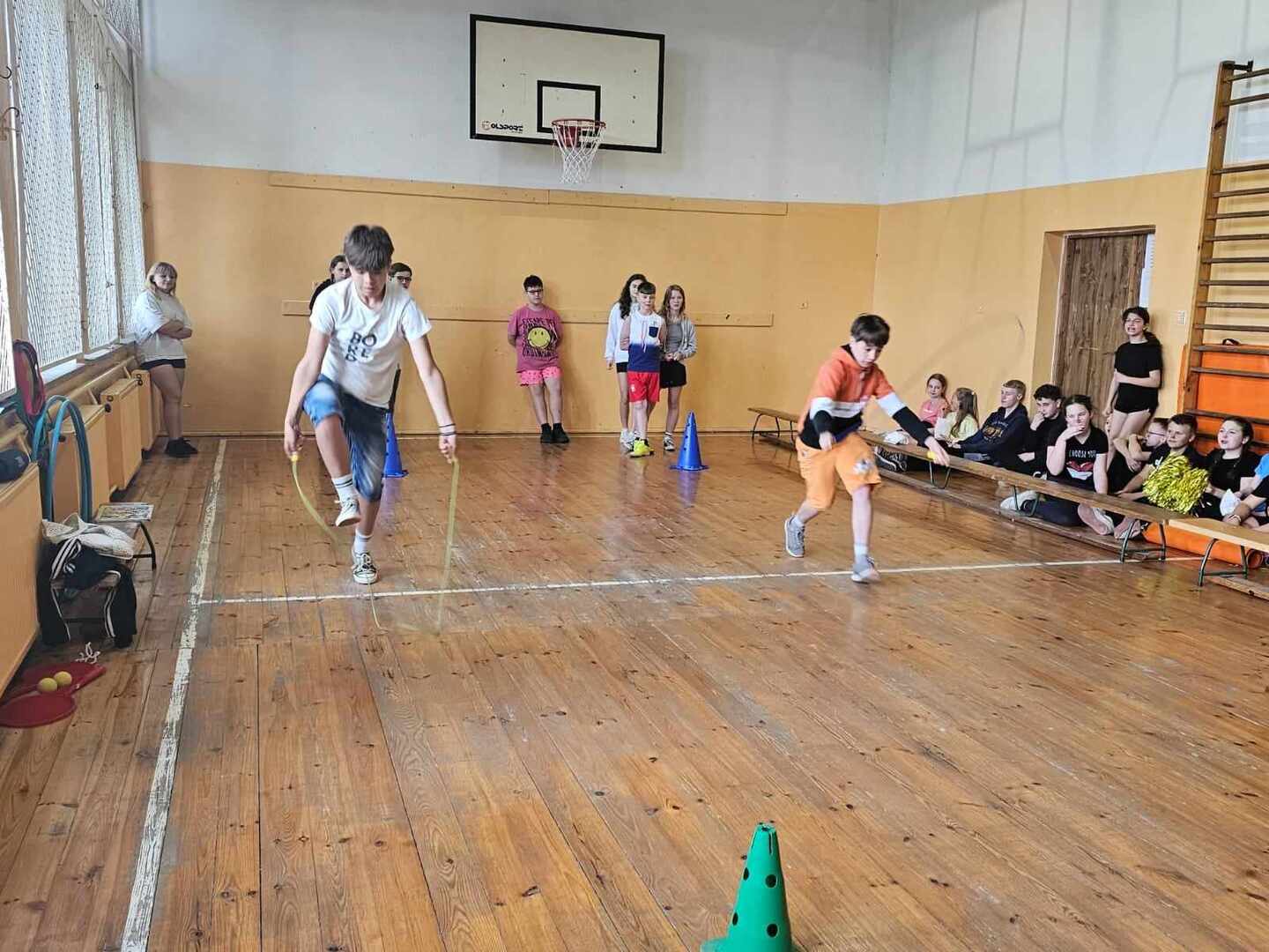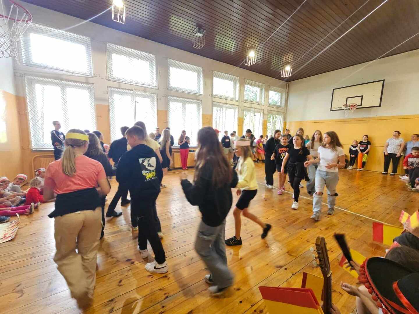 W poniedziałkowe przedpołudnie uczniowie uczestniczyli w różnych zabawch, przygotowanych przez nauczycieli i radę rodziców. Odbył się siatkastyczny mecz Nauczyciele-Uczniowie (0:1), a także gry i zabawy stolikowe ale najwięcej wrażeń dostarczyły wyścigi EUROPEJSKIE PĘDZĄCE ŻÓŁWIE. W anielskiej fotobudce można było przenieść się w obłoki wiedzy... Uczniowie próbowali odgadnąć swoich nauczycieli, z czasów ich dzieciństwa, zagrać w japońskie szachy czy warcaby. Słodkim popcornem i lodami częstowały Panie z Rady rodziców a dwóch absolwentów wsparło nauczycieli w grze- jutro rewanż!